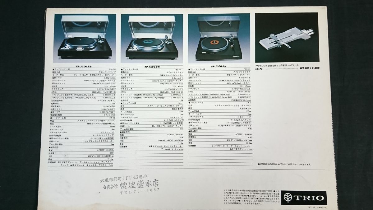 | 【昭和レトロ】『TRIO(トリオ)DIRECT DRIVE TURNTABLE KP-7700/KP7600/KP-7300 カタログ 1977年12月』トリオ株式会社 | |