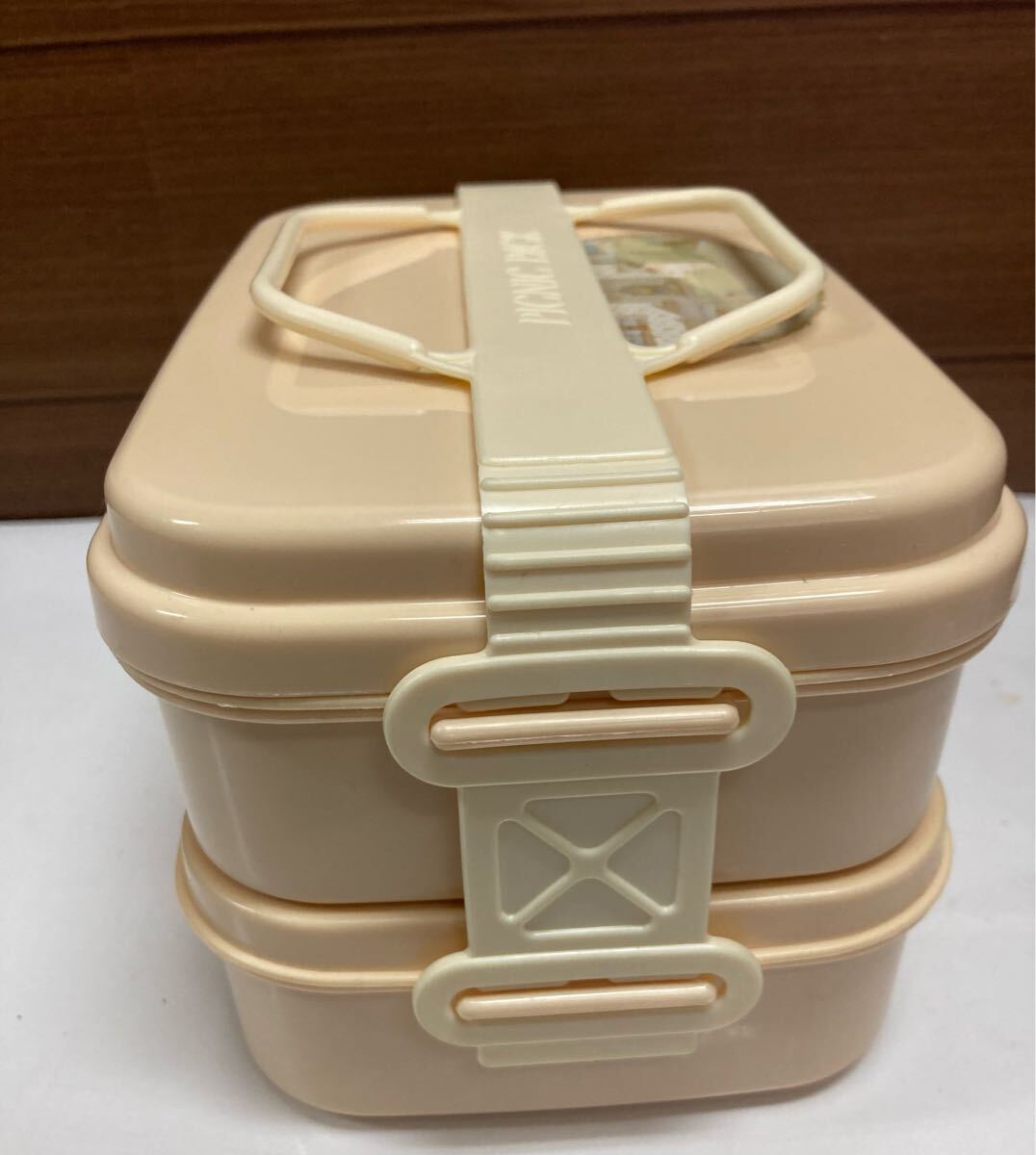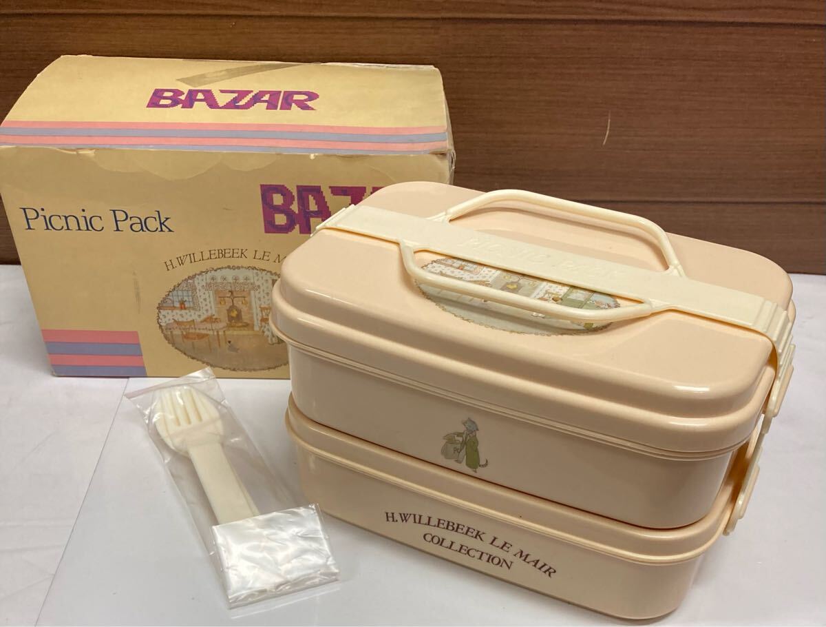 未使用 ♪ カネボウ化粧品 ピクニックパック 2段お弁当箱 BAZAR レトロ 希少 容器 皿 プラスチック フォーク スプーン