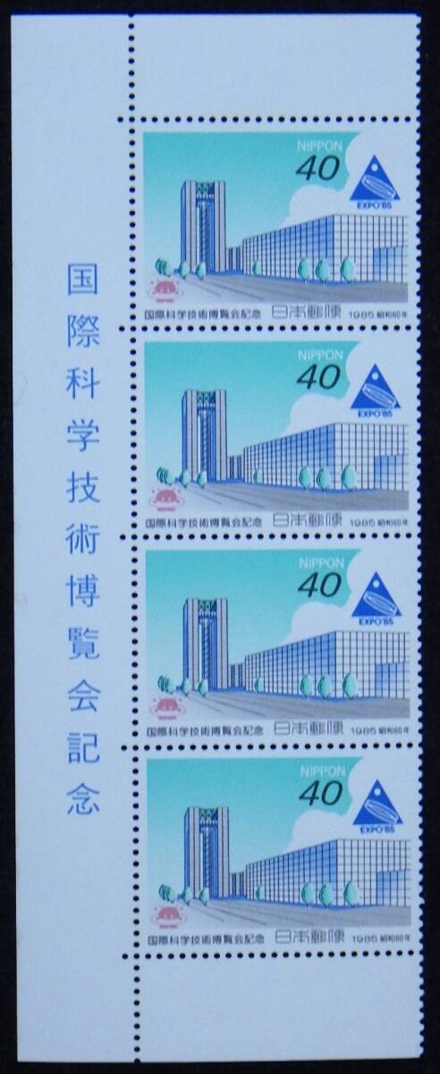 記念切手 国際科学技術博覧会記念 昭和60年 1985年 40円4枚 タブ付 未使用 特殊切手 ランクB