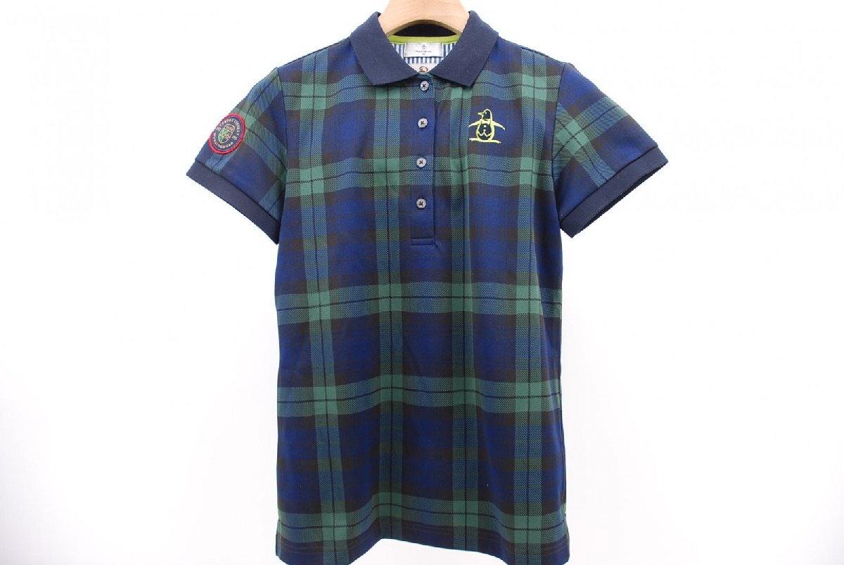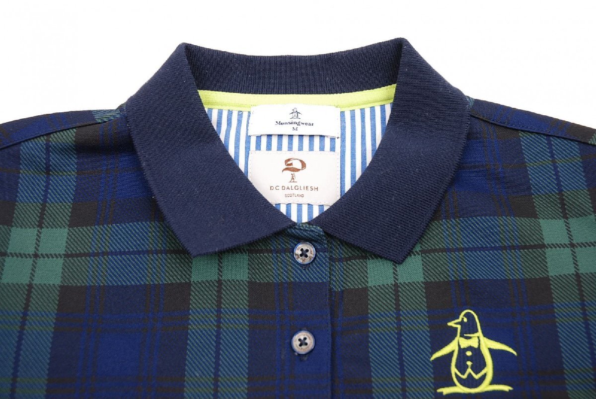 coco 中古【値下げ】 マンシングウェア Munsing wear レディース 半袖ポロシャツ M 紺×緑 ネイビー チェック ネコパケ発送可 66741