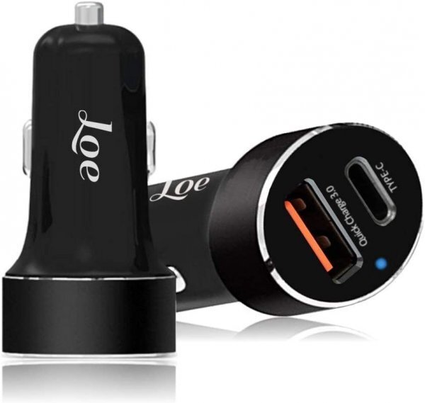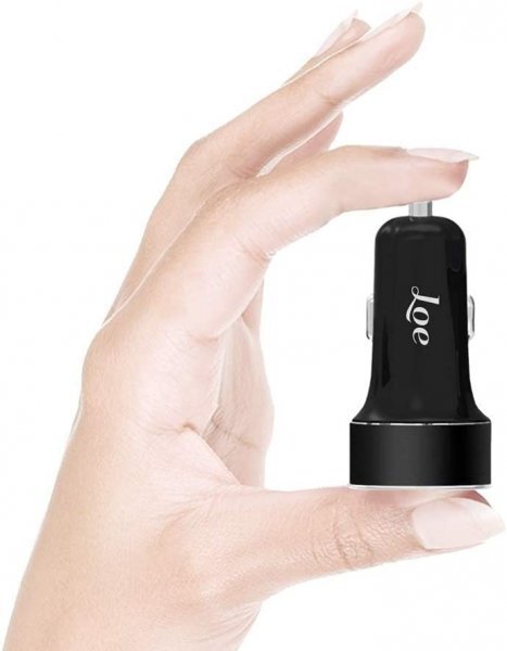車のシガーソケットからUSBポートを介してスマートフォンやタブレットを充電できる車載充電器。