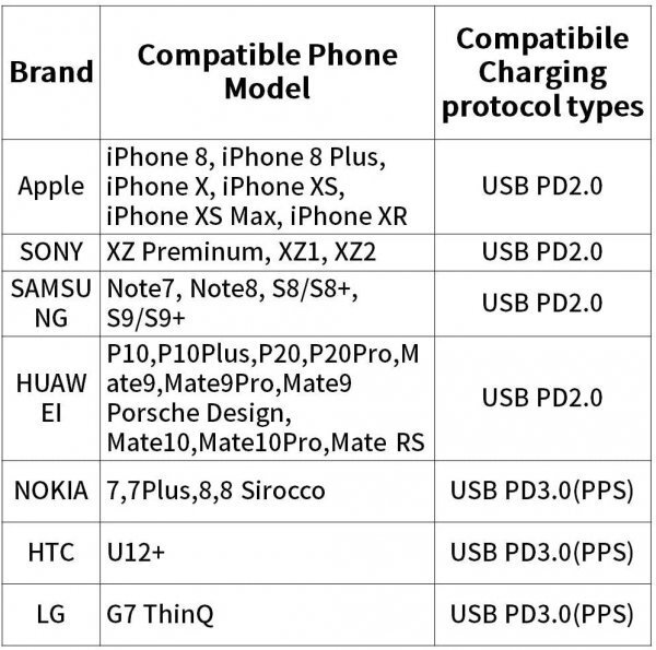 5V/3Aまでの給電が可能となっており、iPhone 11、iPhone 11 Pro、iPhone Xs Max、iPhone XR、iPhone Xs、iPhone X、iPhone 8 Plus、iPhone 8、iPad Pro 11 等USB-C機種への急速充電可能。