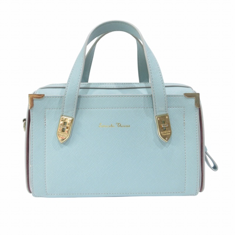 サマンサタバサ Samantha Thavasa 2WAY ハンドバッグ ショルダーバッグ ロゴ ゴールド金具 青 ブルー系 レディース