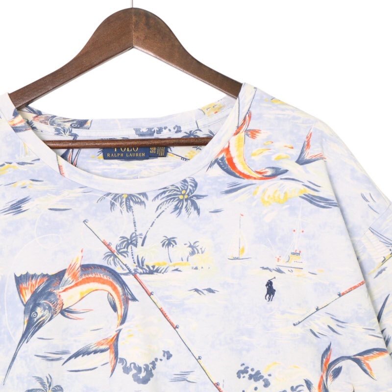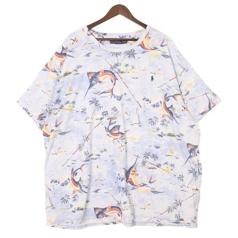 Polo Ralph Lauren ポロラルフローレン クルーネック半袖Tシャツ メンズUS-4XB メカジキ総柄 ブルー 4XL hsc-0409n