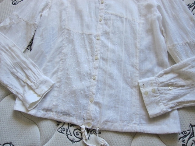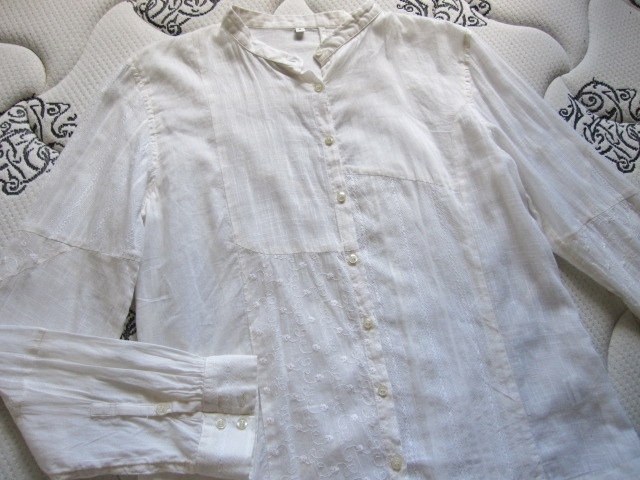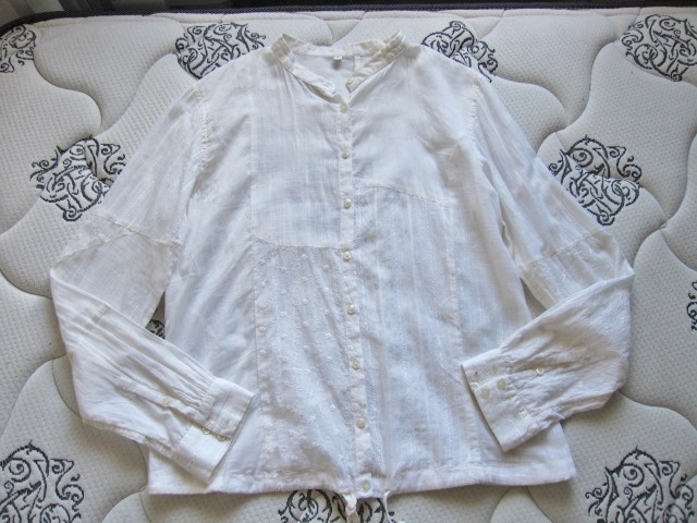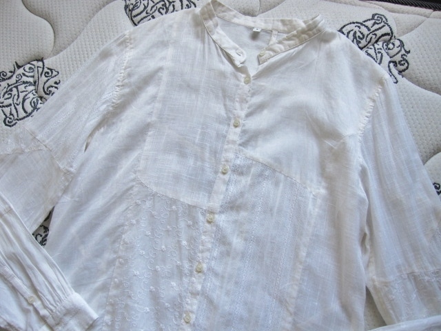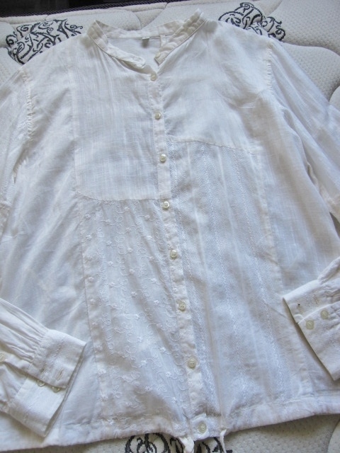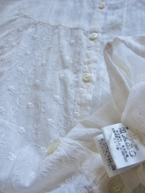 綺麗め 良品計画 ノーカラー お洒落な刺繍 ブラウス インド製 上質コットン 美品 MUJI 綿100% シャツ Brand 良品計画 カーディガン 得