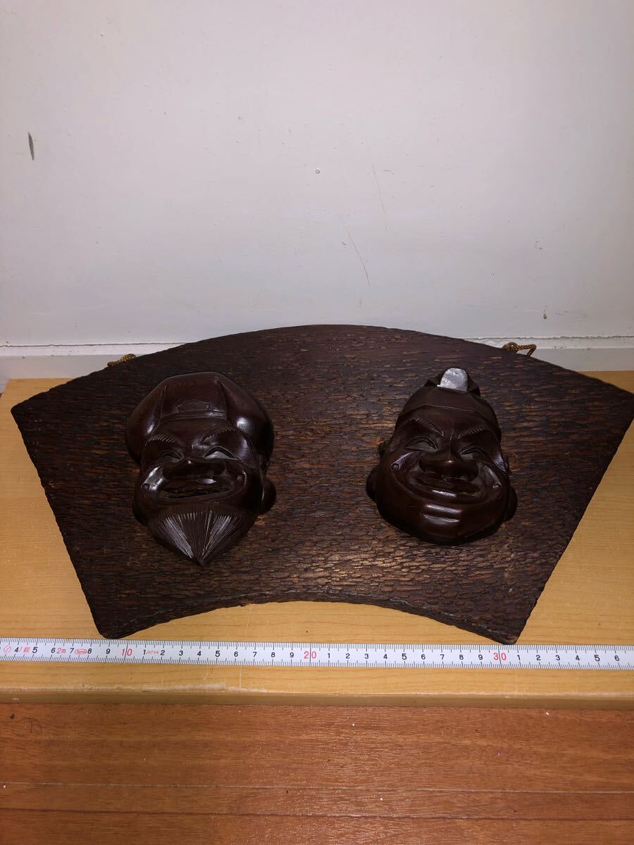 GY0502 木製壁掛け 恵比寿・大黒天 お面 昭和レトロ