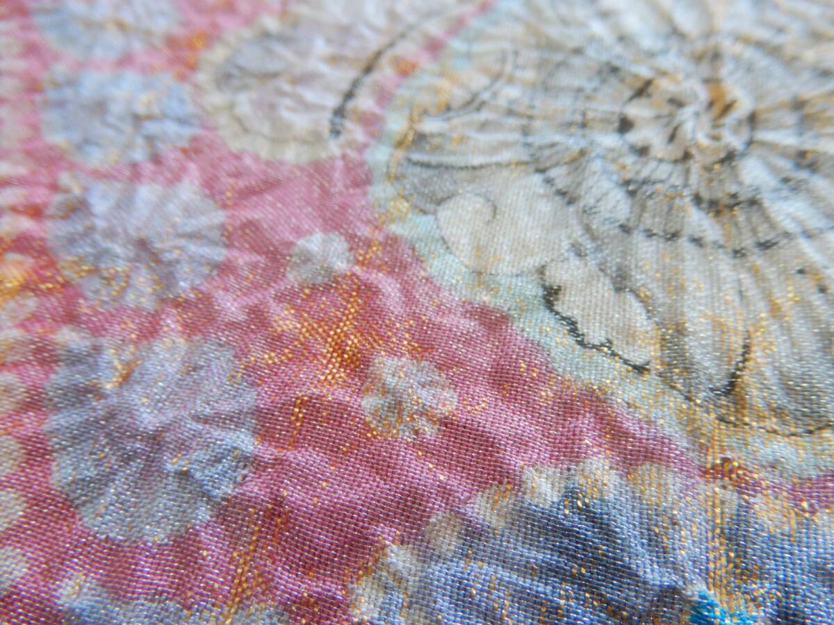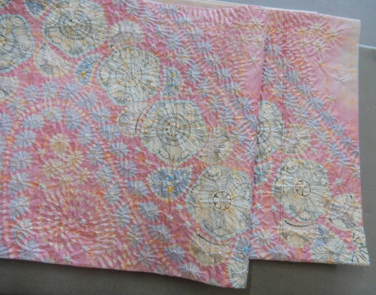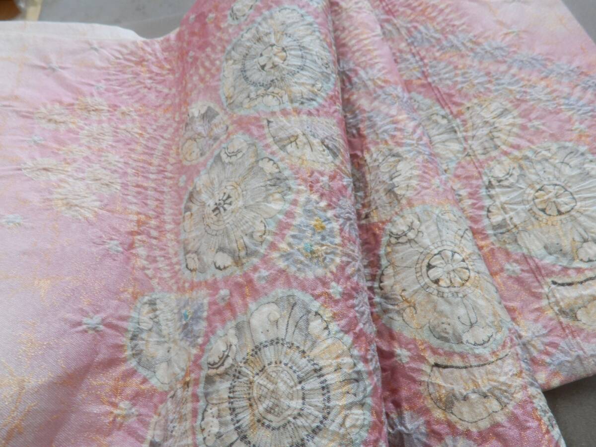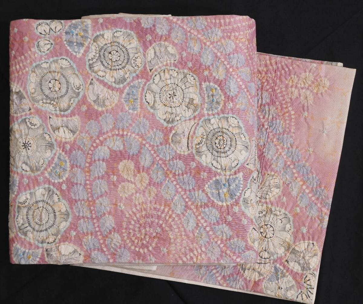 <銀の斧>正絹・辻ヶ花袋帯・本絞り染め・桜色・和名 虹色・正装用