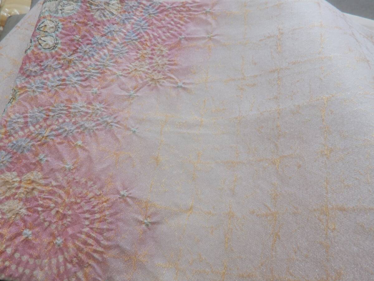 <銀の斧>正絹・辻ヶ花袋袋・本絞り染め・桜色・和名 虹色・正装用