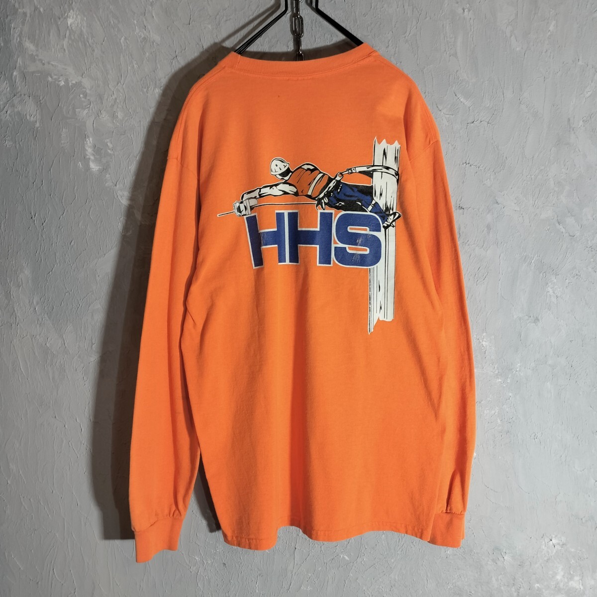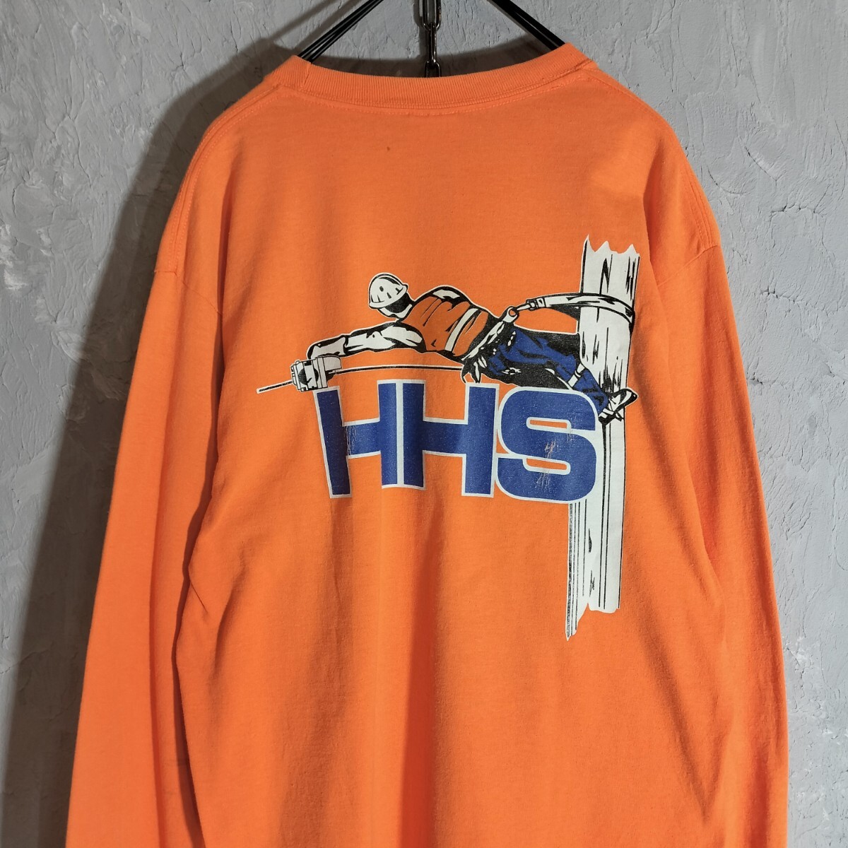 ・バックプリント企業ロゴ 長袖Tシャツ。