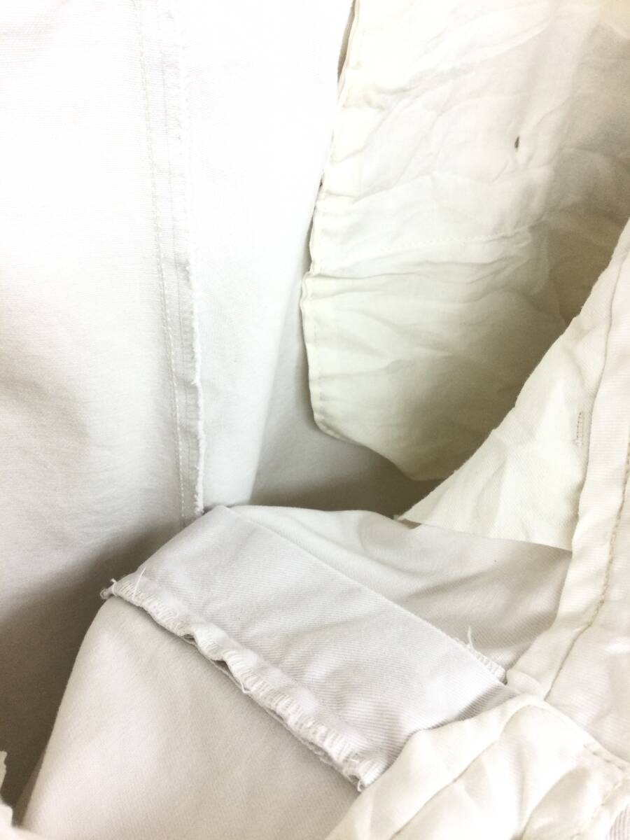裾や裾裏、太ももなど表面や内側のところどころに汚れ、左臀部に擦れ穴、