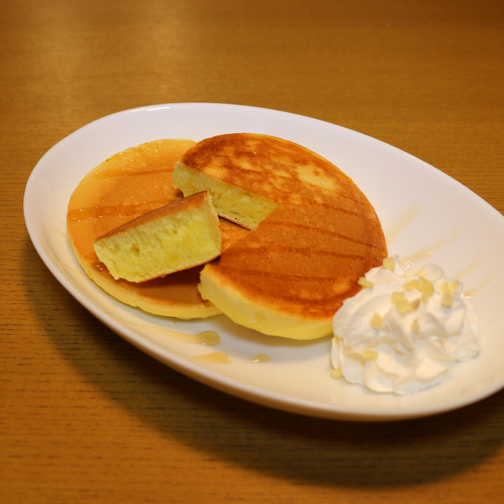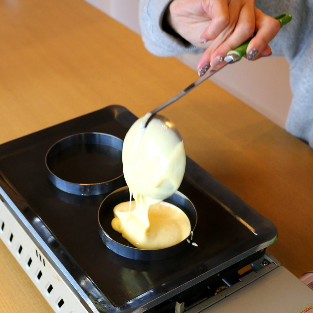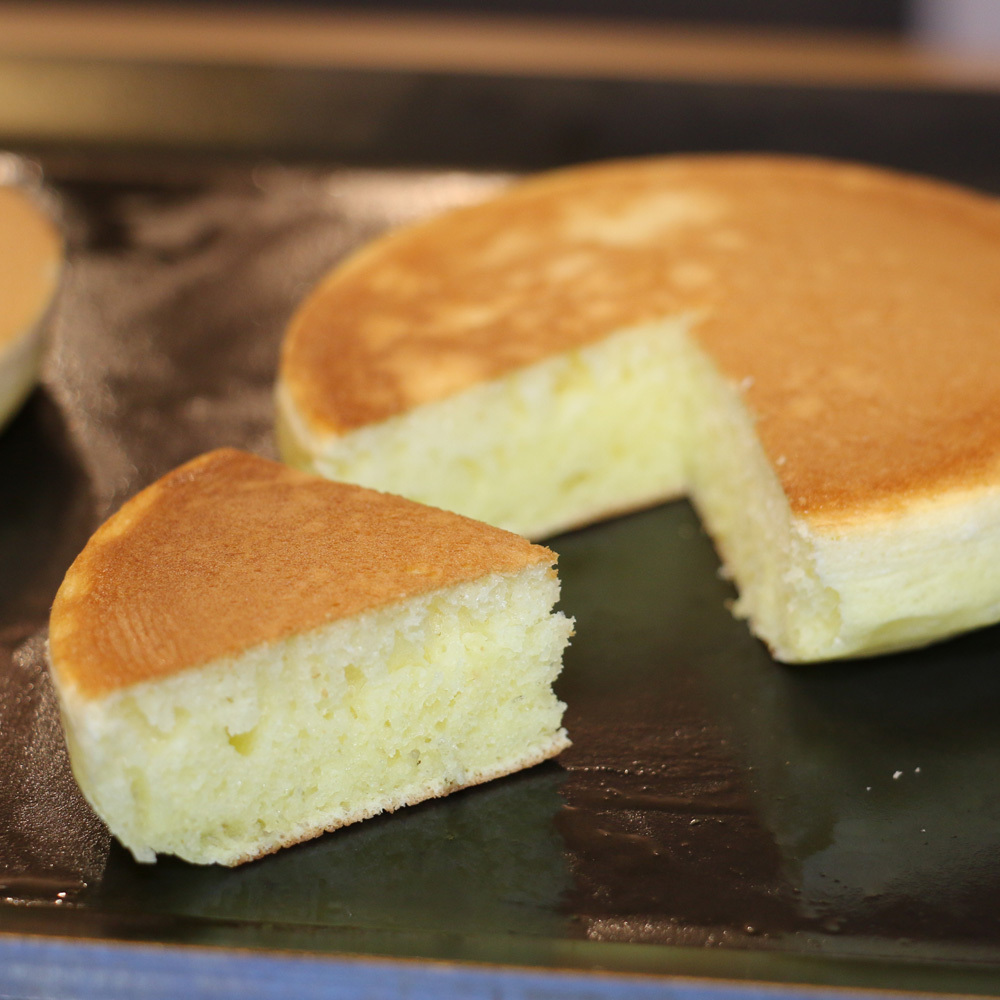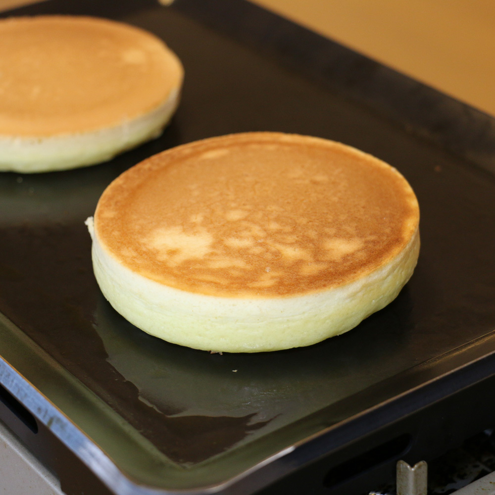 極厚鉄板で焼くと厚みのあるパン生地でも中までしっかり火が通りますので、ふわふわなパンケーキが焼き上がります。