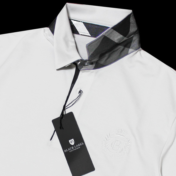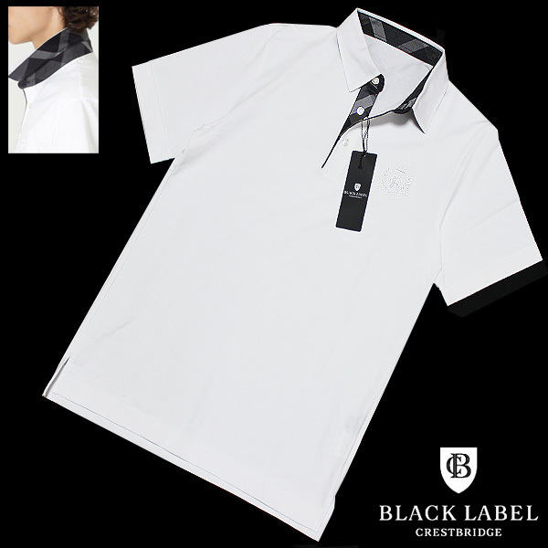 送料無料!新品 LL(4)クールマックスCoolmax ブラックレーベル クレストブリッジ CBチェック 半袖ポロシャツ白 BLACK LABEL CRESTBRIDGE XL