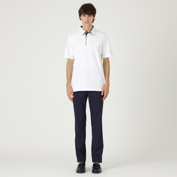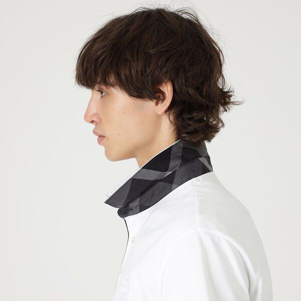 CBチェックを羽根衿裏、台衿裏、下前立てにあしらったポロシャツ。