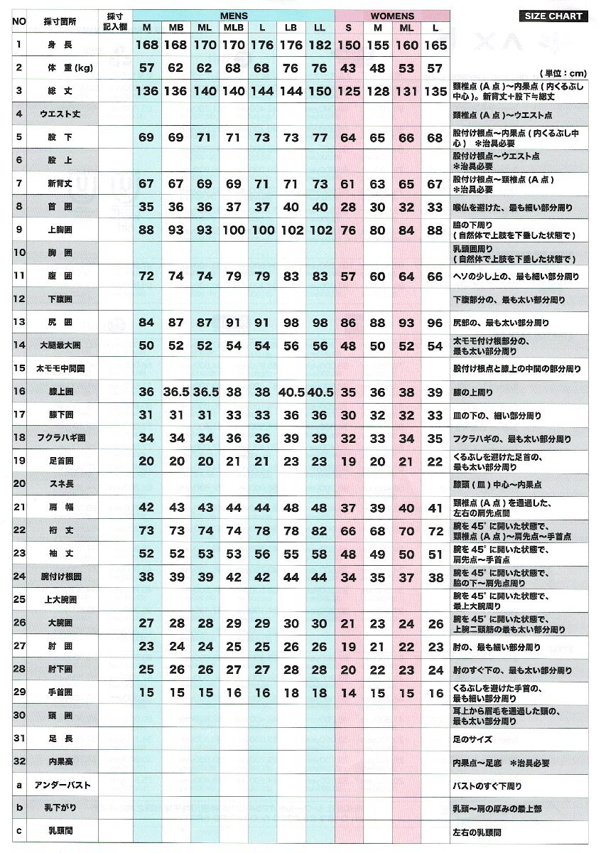 伸縮性の高い素材のため多少の誤差はカバーできますので、サイズ表をご覧になってください。