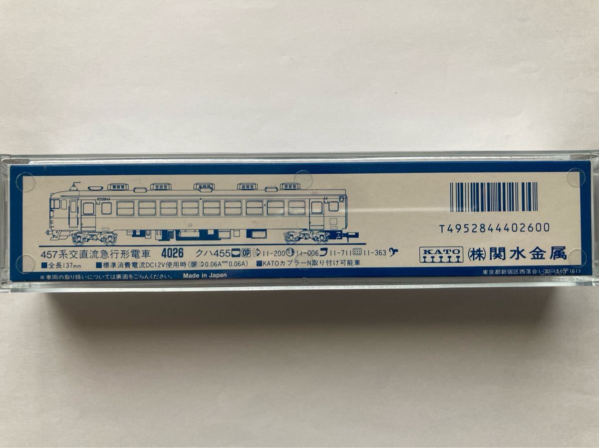 カトーのNゲージ 国鉄急行形電車 クハ455(4026)です。