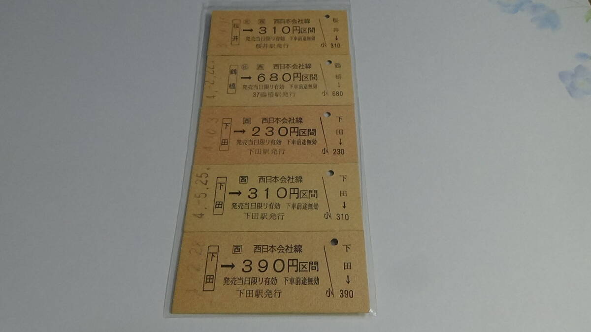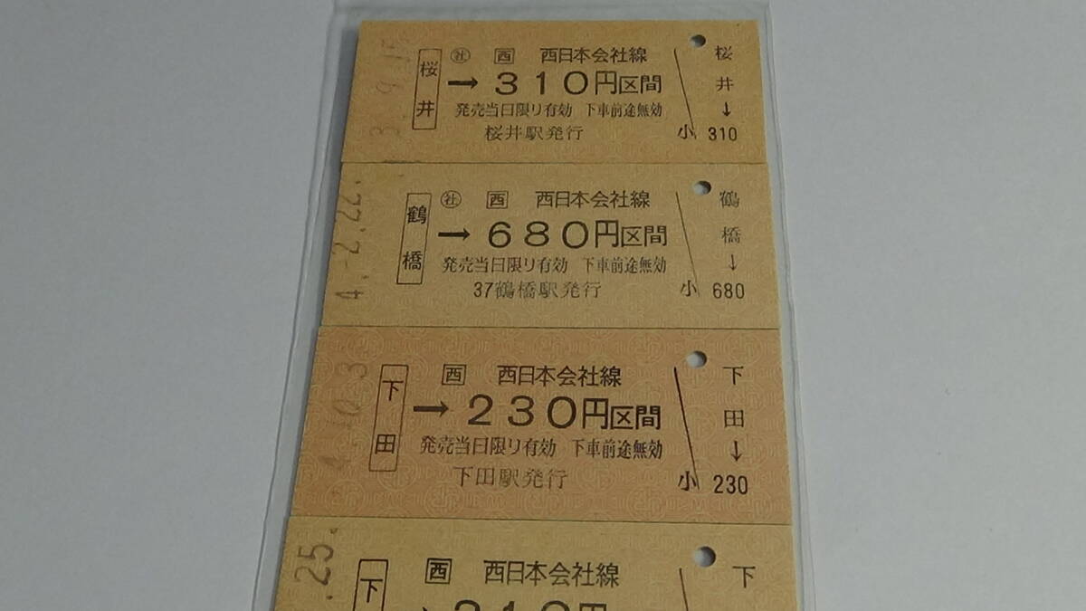 JR西日本線の切符。 B型硬券 乗車券5種5枚。 本券は、コレクション用です、実際に使用することは出来ません。 未使用券。 切符に目立つような折れ・スジ等は無いようですが、経年によると思われる劣化、日焼け、ソリ等が認められますので、必ず画像にてご判断をお願い致します。 ご入札に際して画像を良く、ご覧頂き十分考慮の上、慎重に入札をお願い致します。 入札に辺り、自己紹介欄をご一読お願い致します。 現状渡しです。 ノ-クレ-ムでお願いを致します。 ※注意 ●尚、商品は厚紙にて保護の上、梱包を致します。 ●普通郵便・スマ-トレタ-便の場合、不着等の郵送事故の場合でも保証は出来ませんので、特定記録郵便(追跡有り・保証なし)・レタ-パック(追跡有り・保証なし)又は簡易書留(追跡有り・保証有り)をお勧め致しますので、ご精算時にお申し付け下さい。 ●●落札者様へのお願い●● ●ヤフ-の仕様が変わり、落札者様のIDが表示されなくなりましたので、落札後は速やかにご連絡を頂きます様、 ご協力をお願い致します。