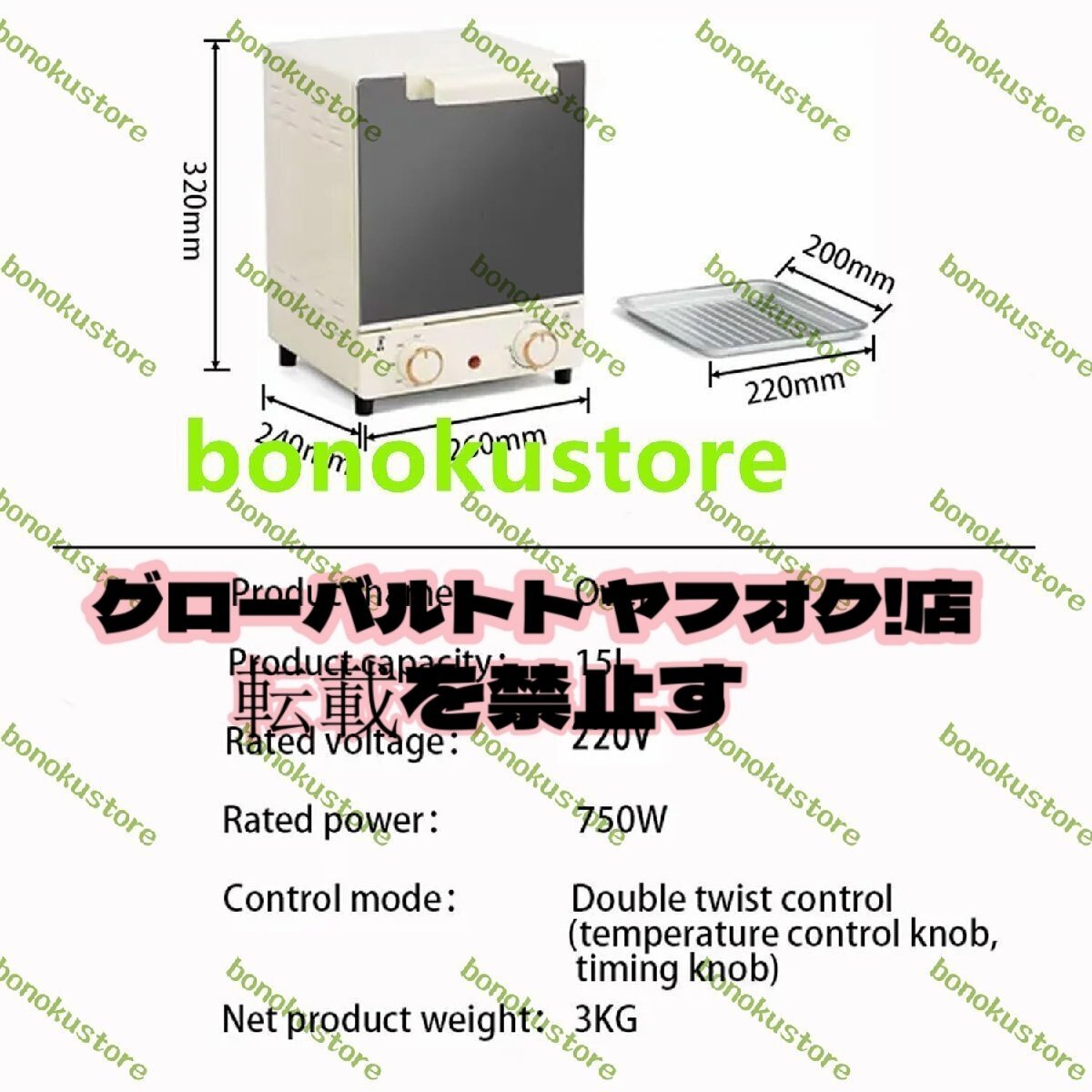 名前: 電気オーブン 色: ホワイト 電力: 750W 容量: 15L 温度調節範囲:70~250℃ タイミング: 0-60分 制御モード: 2 つのノブスイッチ