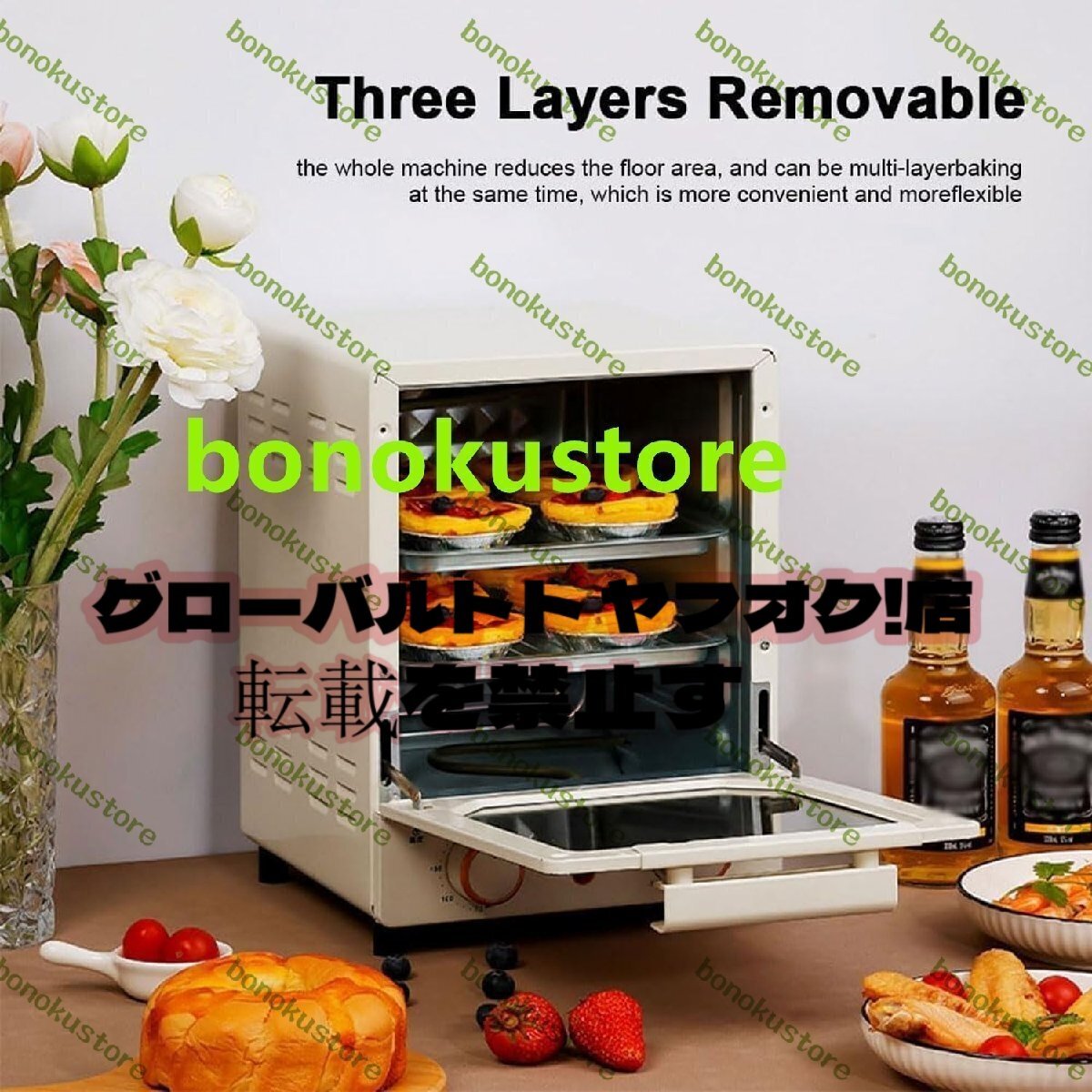 750W 3層電気オーブン、70-250℃&0-60分タイマー付き15L縦型スマート対流オーブン、防爆ガラス覗き窓、家庭、オフィス、レストラン、スナックバー用パンメーカー