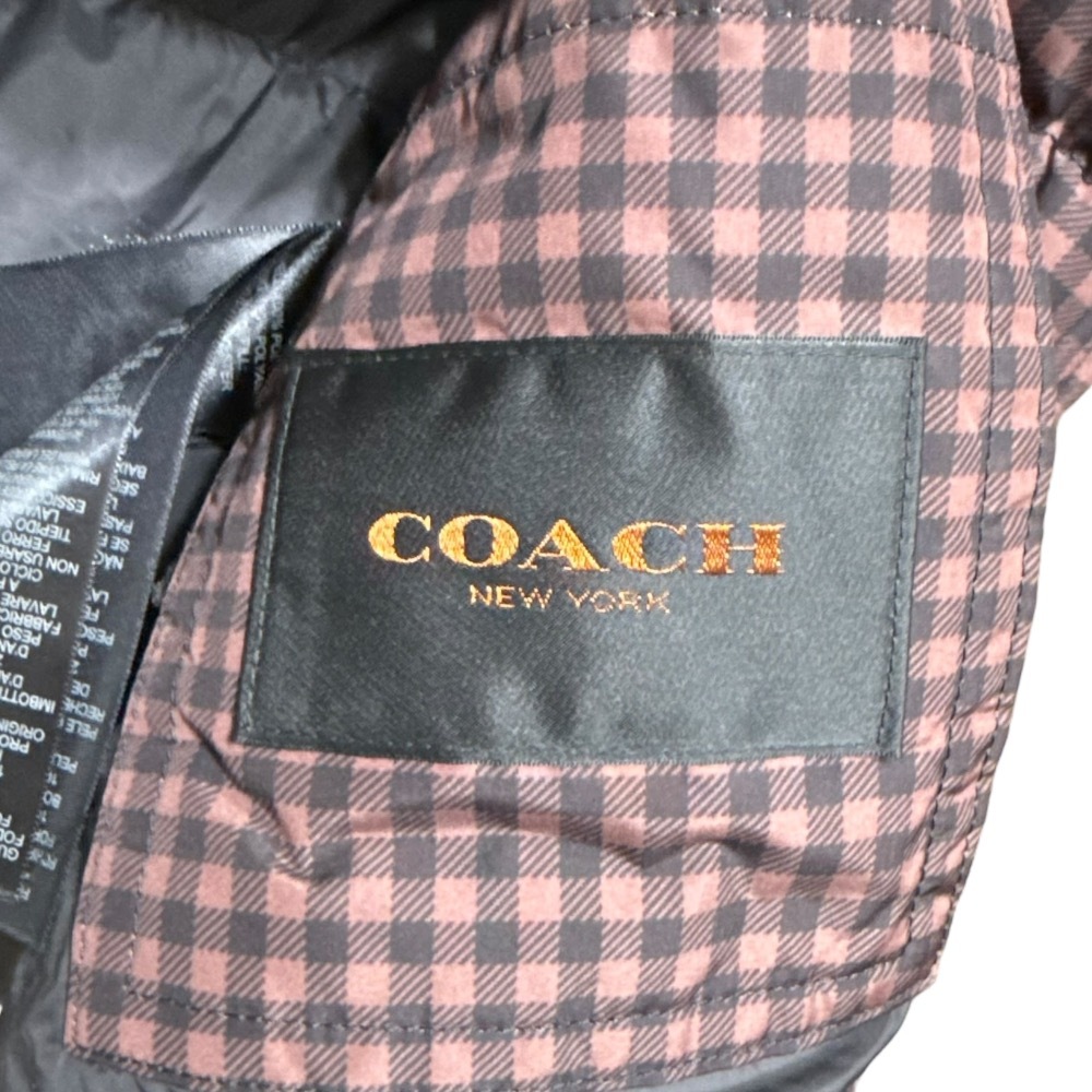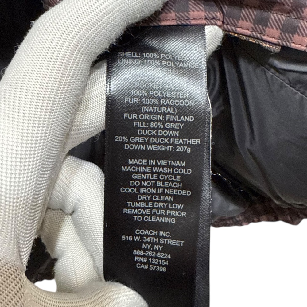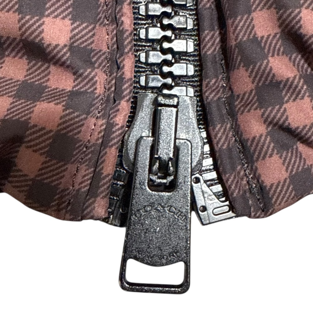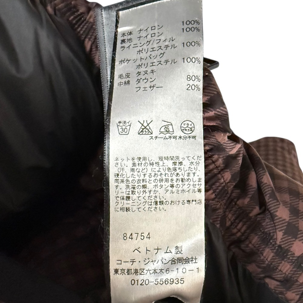 商品名:COACH コーチ チェック柄 ファー付き ダウンジャケット ブルゾン XS ブラウン×ブラック