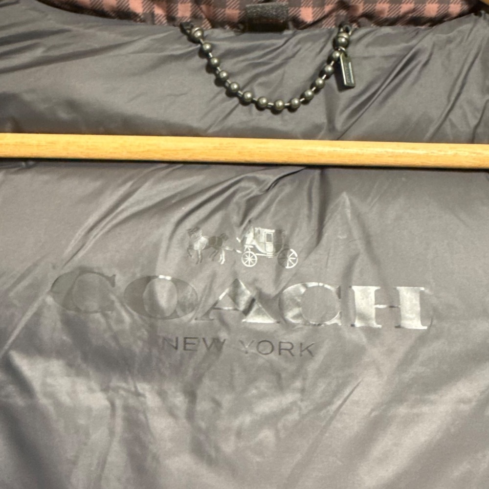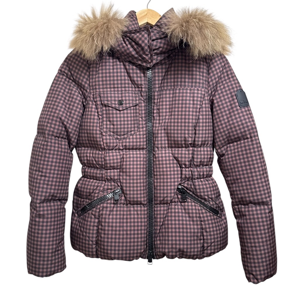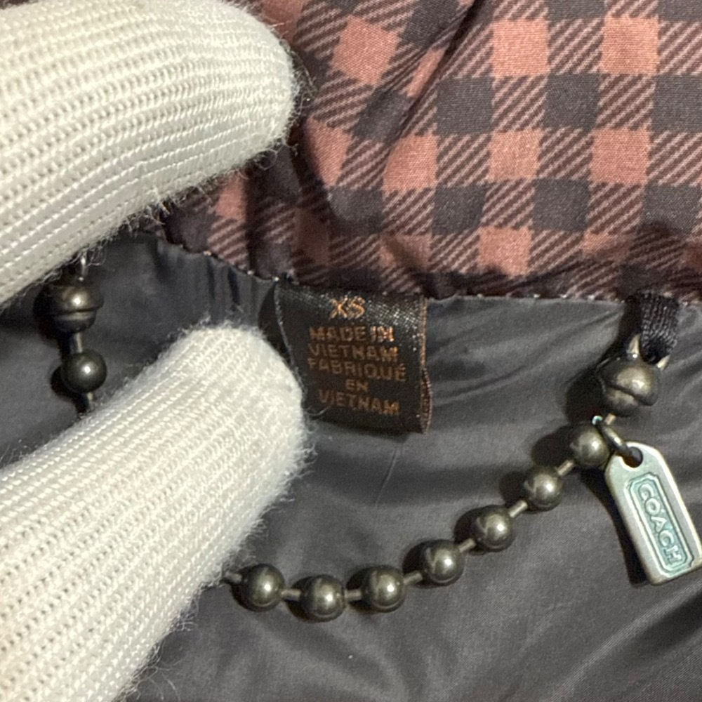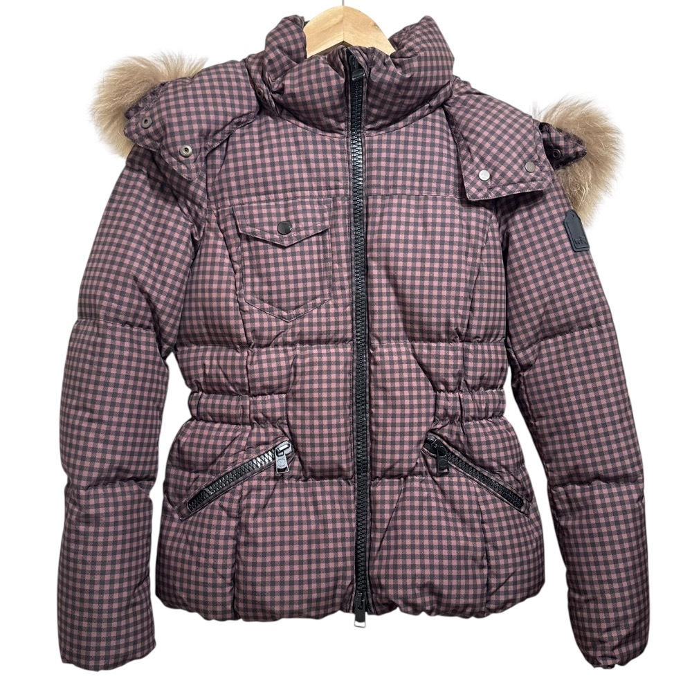 商品名:COACH コーチ チェック柄 ファー付き ダウンジャケット ブルゾン XS ブラウン×ブラック