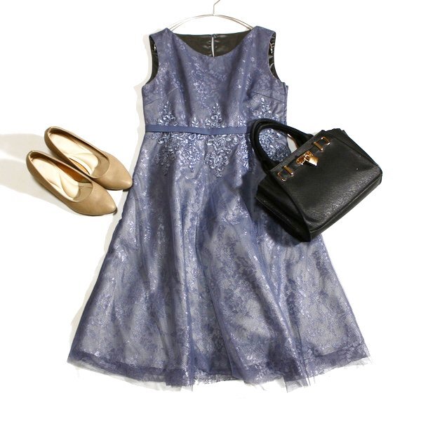 美品 INFINE アンフィニ 綺麗め チュールレース パーティドレス ワンピース 9号 M フォーマル 25B06