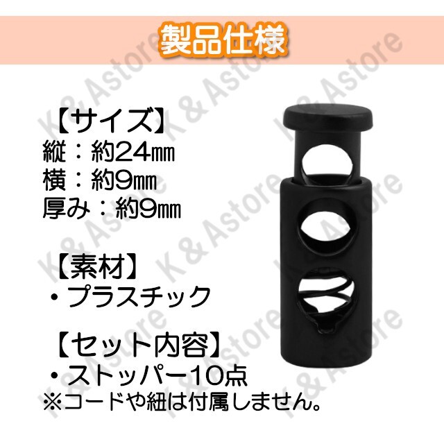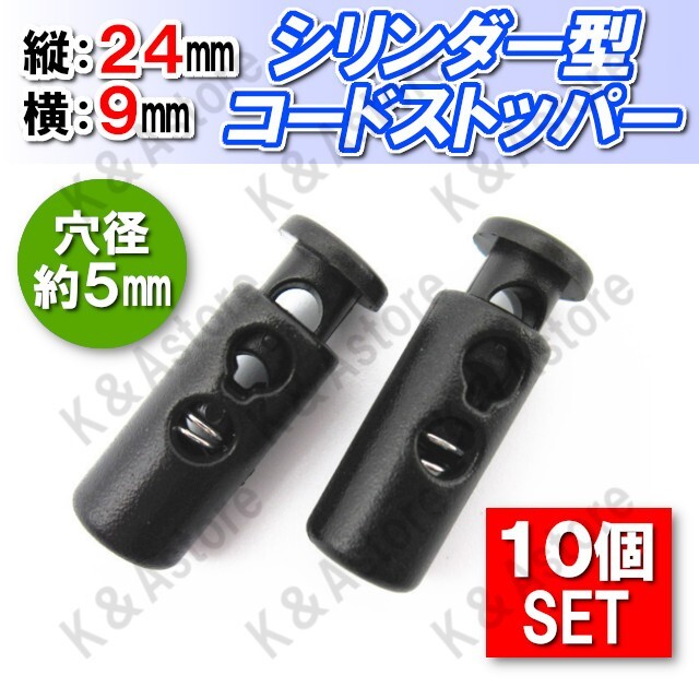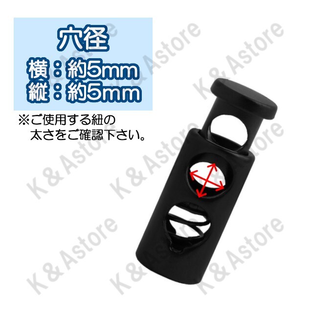コードストッパー 筒形縦2穴 5mm 手芸 コードロック ハンドメイド 長さ調節 靴紐 紐止め 補修 スニーカー ジャージ パーカー スウェット