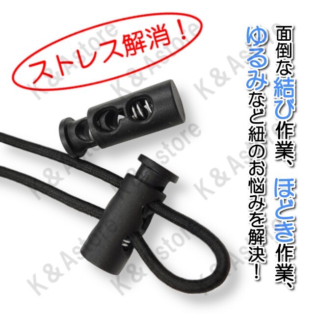 面倒な結び作業・ほどき作業、緩みなどの紐のお悩みを解決!コードストッパーです。