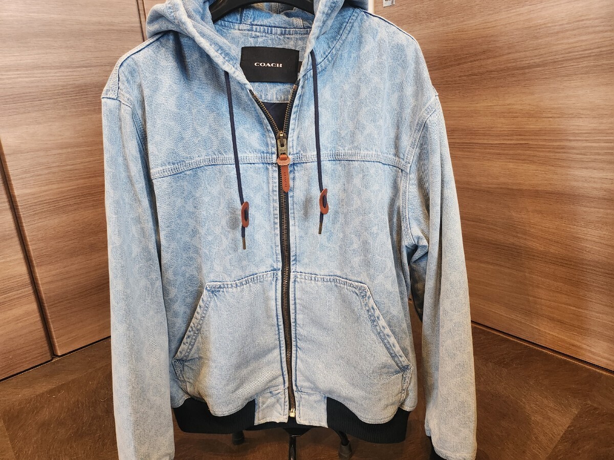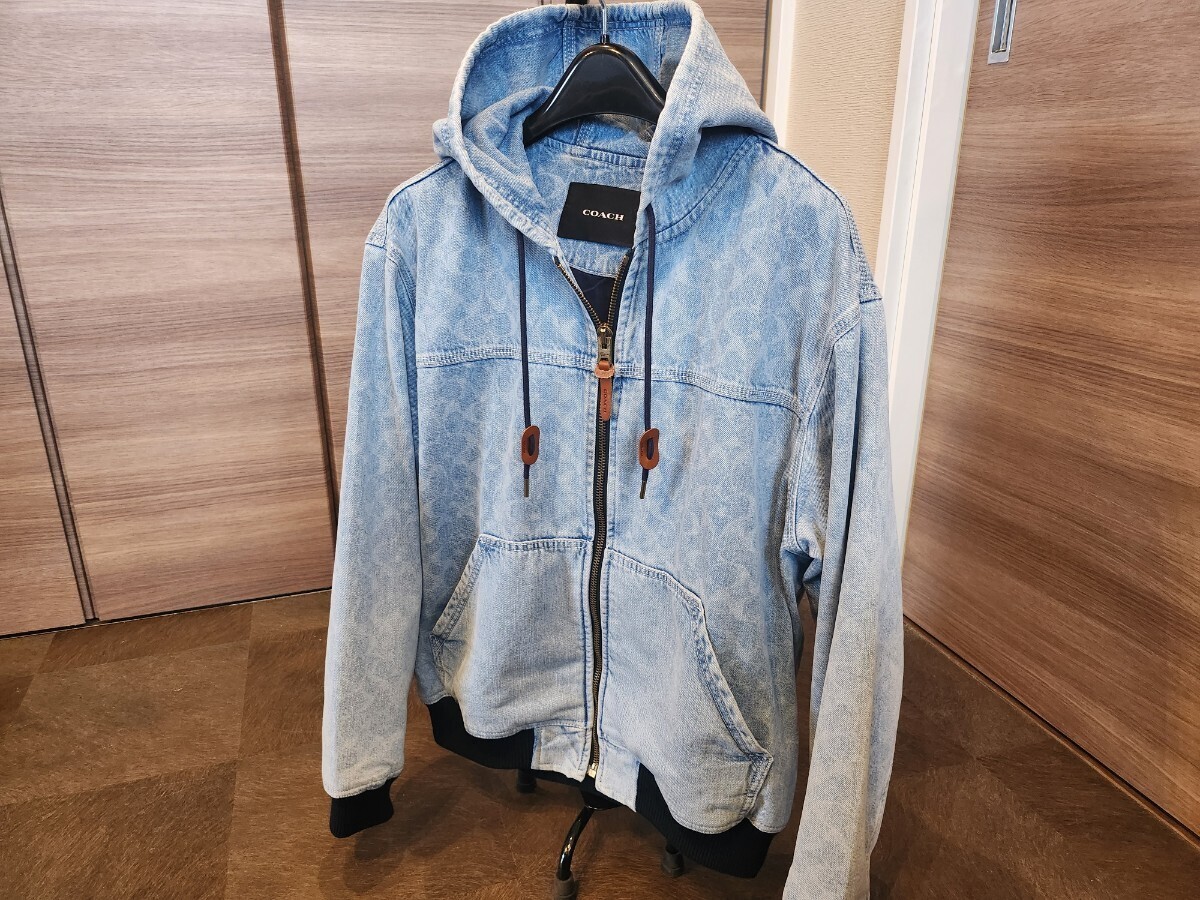 ★ 美品! COACH(コーチ) フーディー パーカー モノグラム サックス系 ライトブルー系 M オーバーサイズ ★