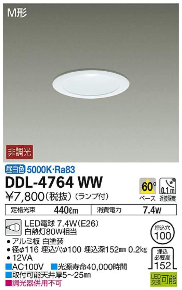 大光電機(DAIKO) ダウンライト LED電球 7.4W(E26) 昼白色 5000K DDL-4764WW