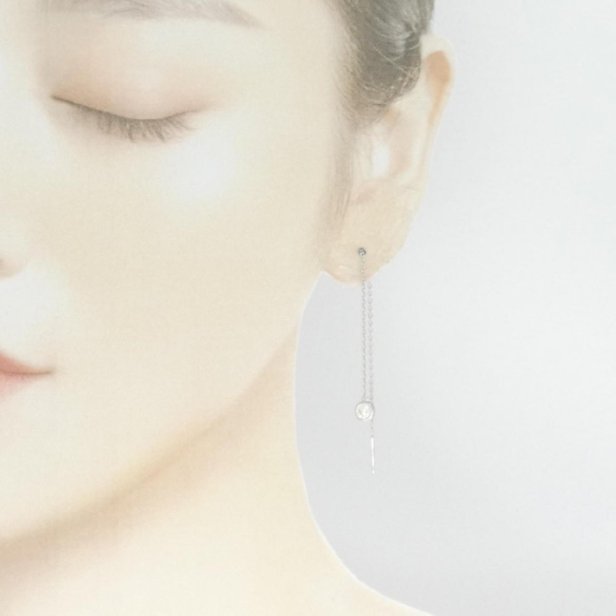 照りのあるダイヤモンドをあしらったピアス。耳元で揺れてキラキラと光を放ちます。