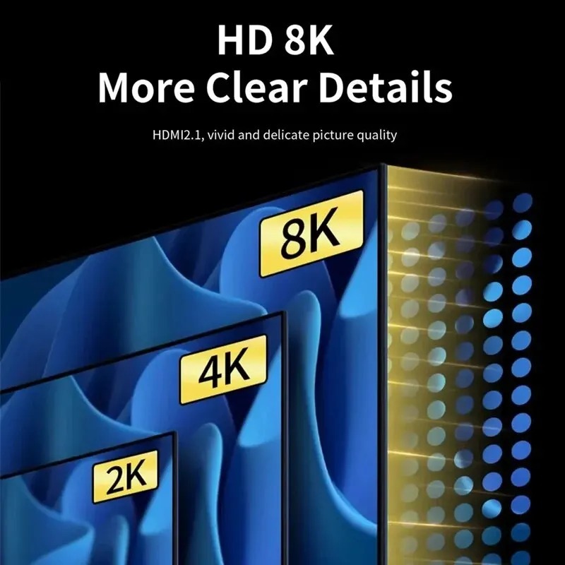 最大 8K@60hz 1080P -- HDMI 2.1 ケーブルによる 8K HDR パススルーをサポートし、ディスプレイ解像度は最大 3840x2160、2560x1600、2560x1440、1920x1200、および 1080p なので、あらゆる細部をキャプチャできます。