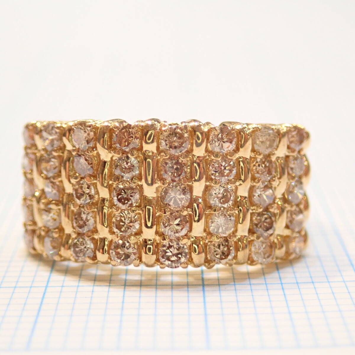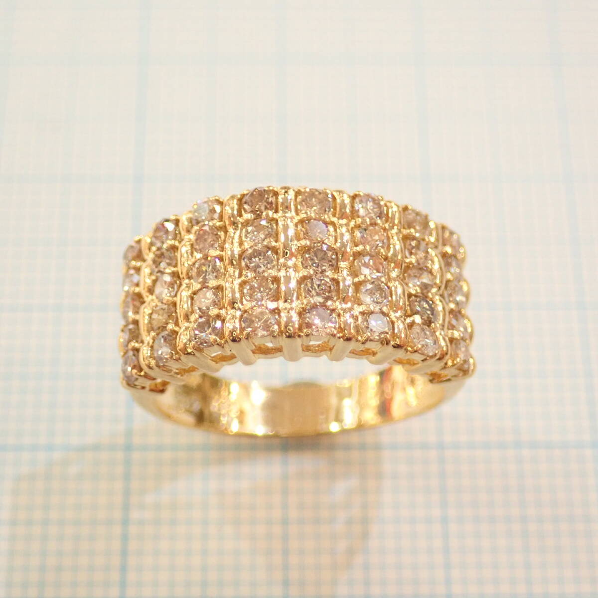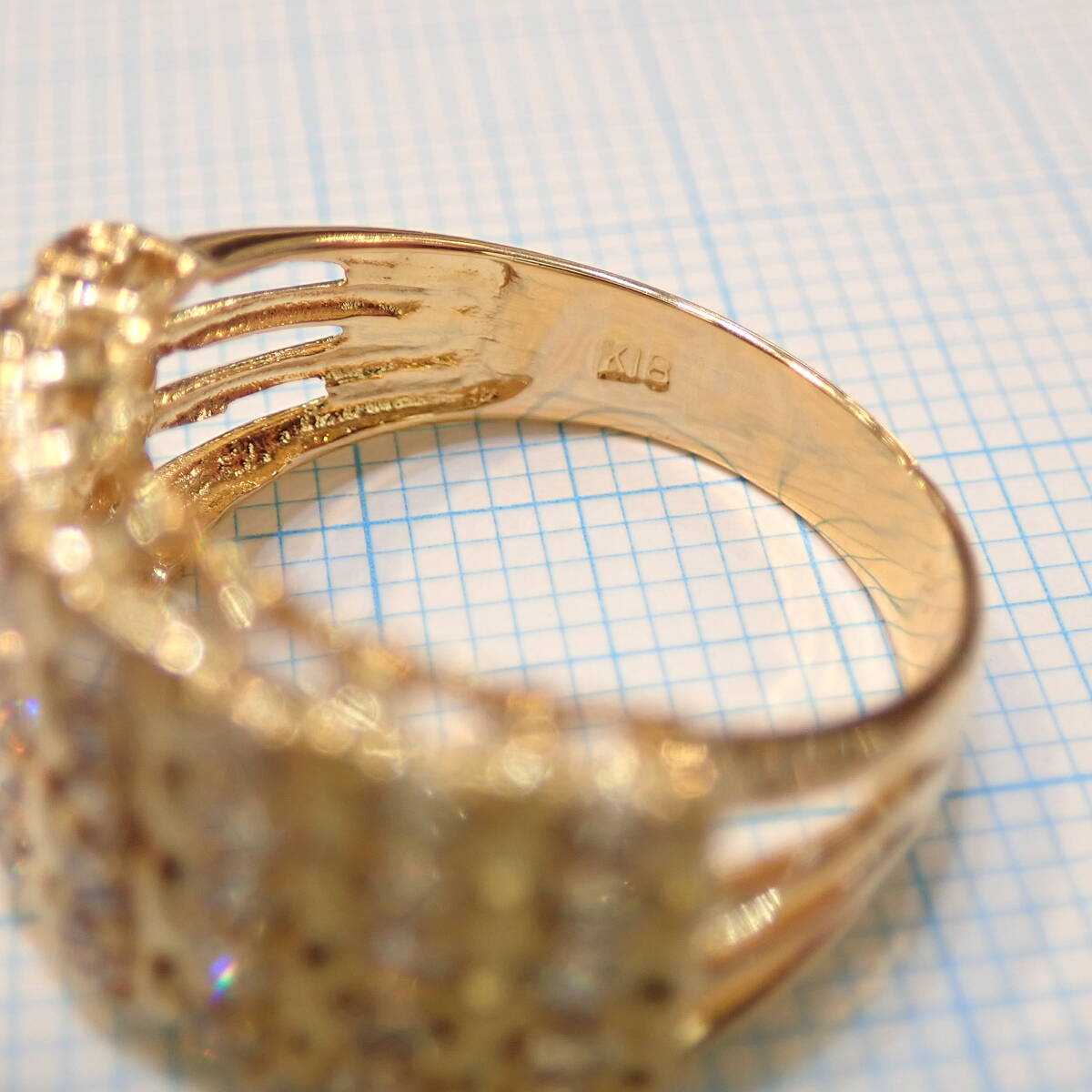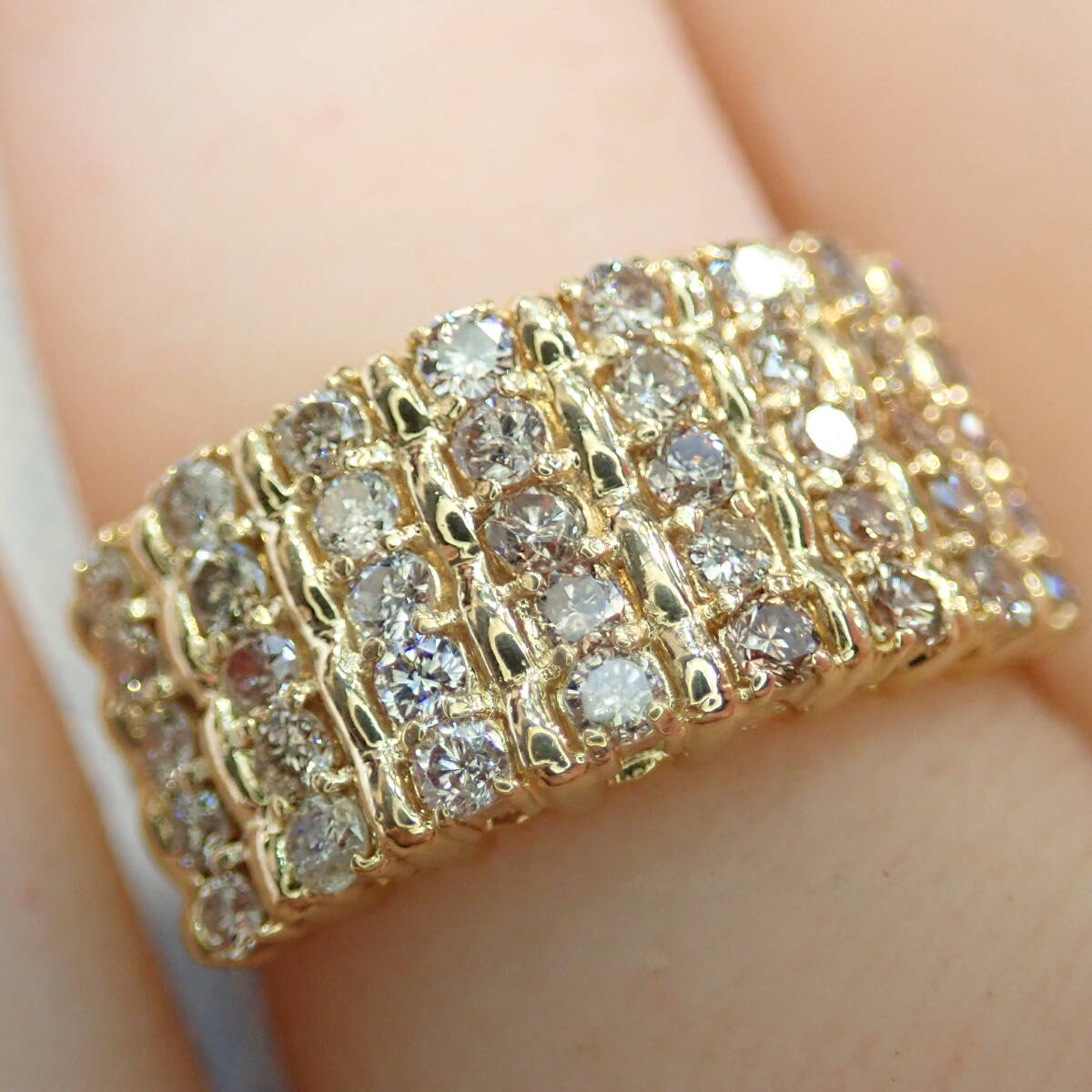 ■K18YG ダイヤモンドファッションリング D:1.02ct■ボリューム■ライトブラウン系■指輪■中古磨き仕上げ■