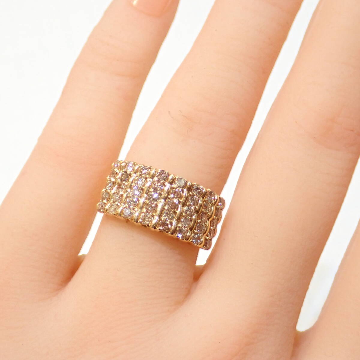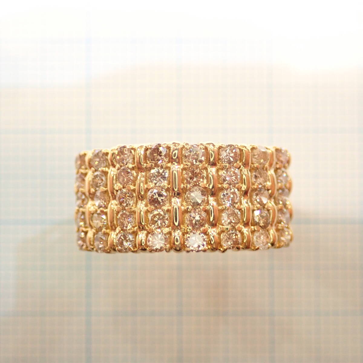 輝きのあるライトブラウン系のダイヤモンドが合計1.02ct使用し、ボリュームも有り高級感のある華やかなリングです。