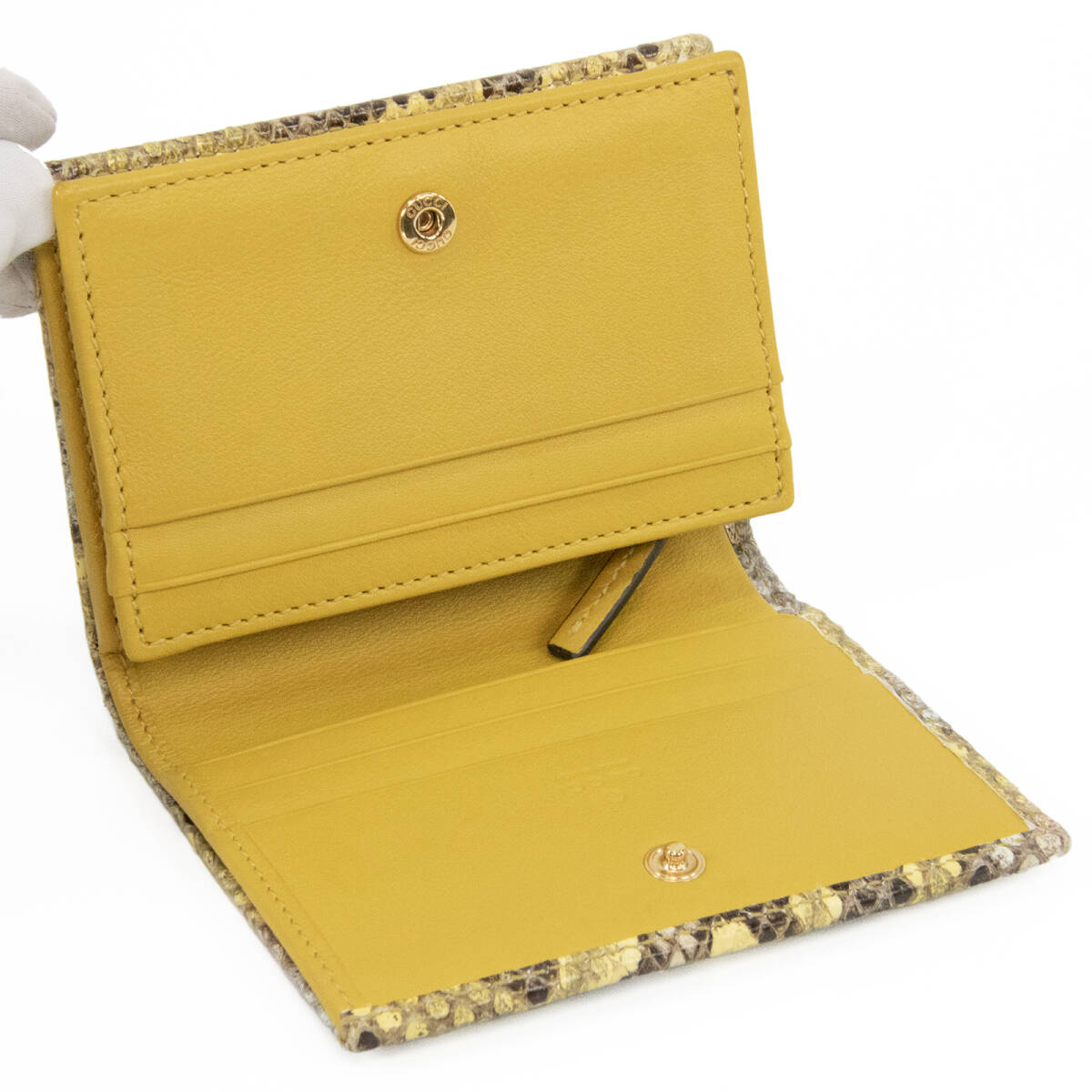 本物 送料無料 グッチ 短財布 二つ折り 新品同様 レディース パイソン GGマーモント 黄色 茶色 珍しい レアカラー コンパクト ロゴ C219