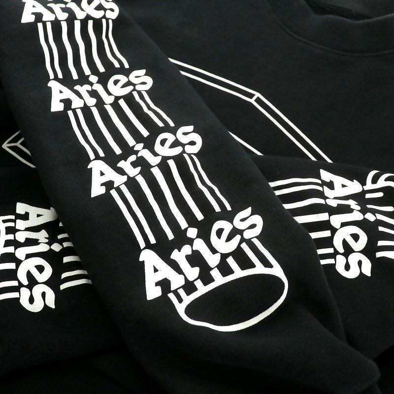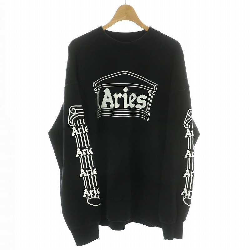 アリーズ ARIES Column Sweatshirt スウェット トレーナー 裏起毛 ストリート ドロップショルダー グラフィック XL 黒 白 FUAR20001