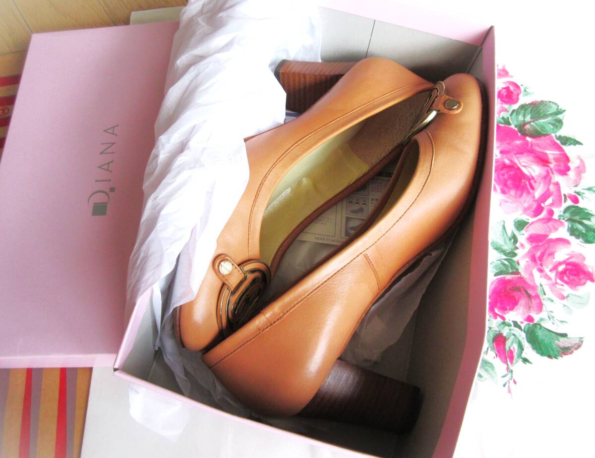 ★★★ご覧のダイアナDIANAのブランドケース入りのパンプスです。サイズは24.5センチで、数回の使用後、自宅保管しておりました。シックな明るめの茶で、これからのシーズンのご利用にぴったりです。自宅保管品で格安にいたします、ご了解ください。都内有名デパートで購入してあります。購入価格は18,000くらいでした。★★★