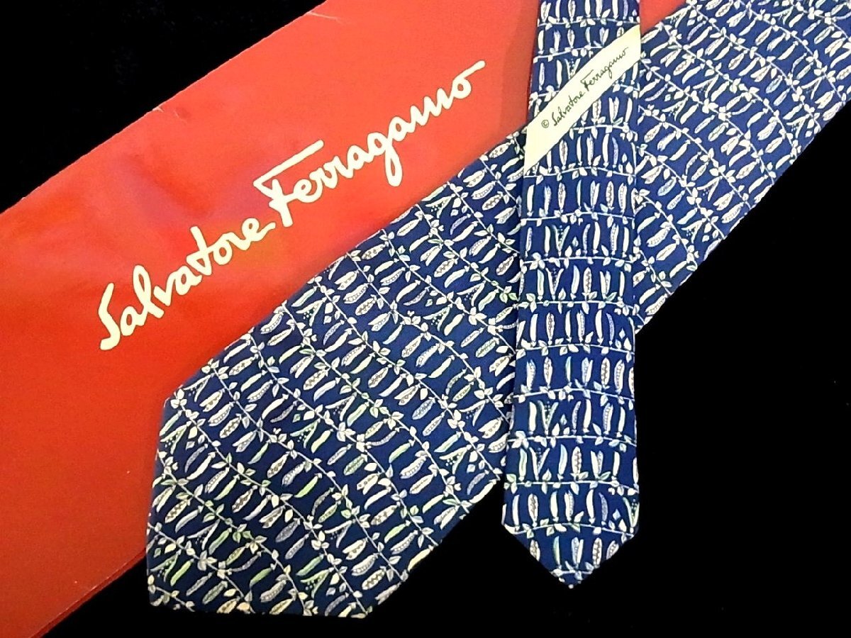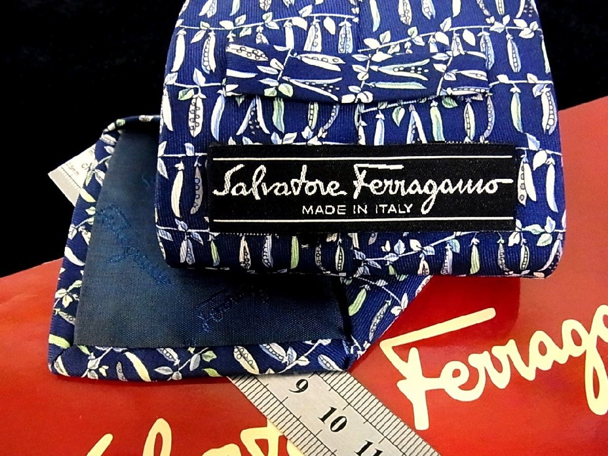 ★今週の特売★6419★高級ブランド【キャラ柄】★フェラガモ【豆 さやえんどう 野菜 柄】ネクタイ★