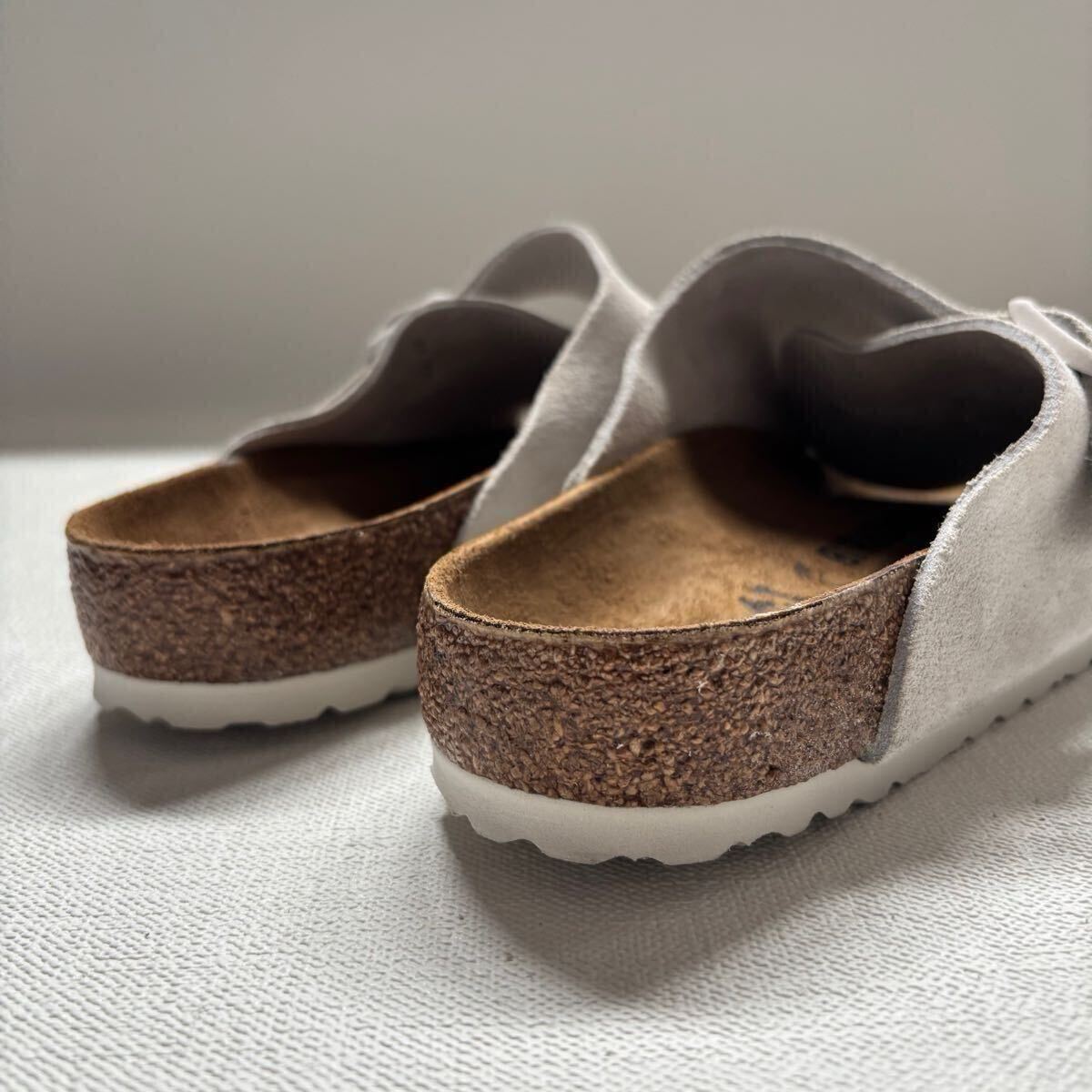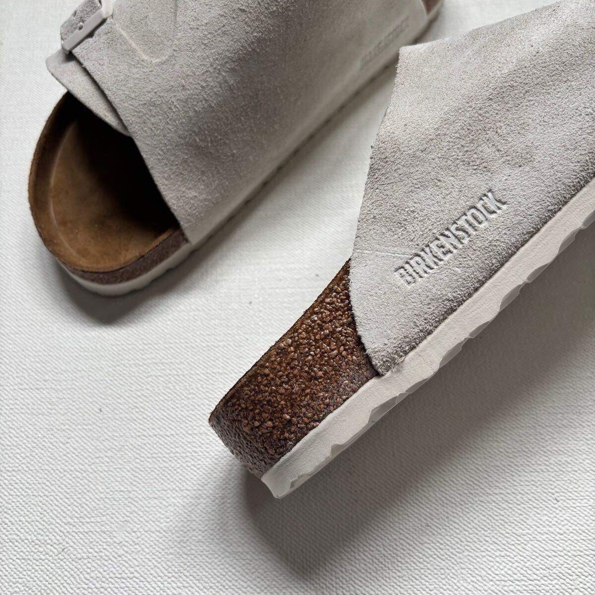BIRKENSTOCKビルケンシュトックの人気の定番、Zurich チューリッヒの希少カラー、アンティークホワイトです。アンティークホワイトのスエードのアッパーに合わせ同系色でカラーリングされたマット仕上げのバックル、アウターソールがモダンでスタイリッシュな一足。