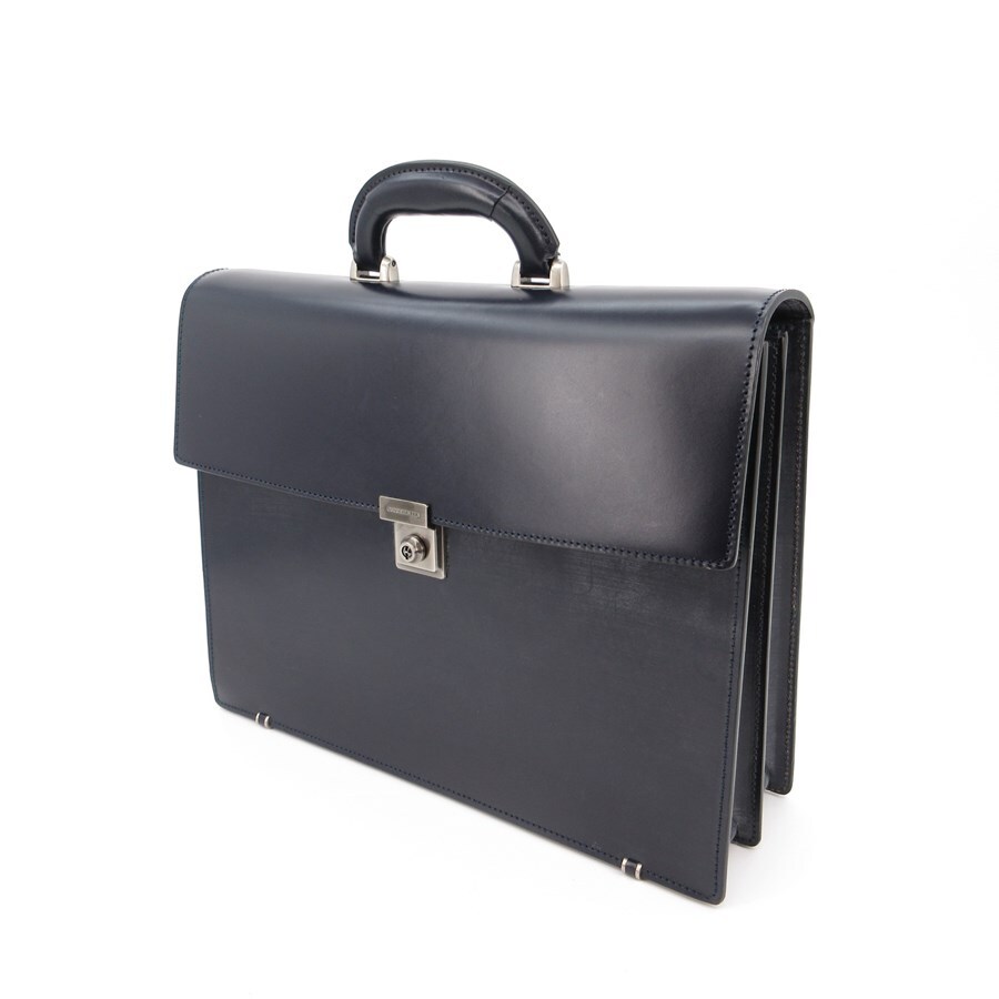 ・送料無料 美品 ココマイスター COCOMEISTER ビジネスバッグ ブリーフケース 書類カバン ハンドバッグ 鞄 手提げ ブライドルレザー 本革 紺 ネイビー系 メンズ