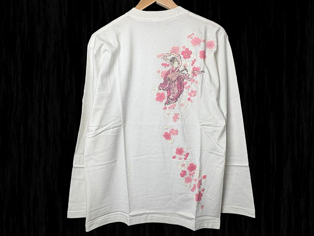 白 Mサイズ 4400円 弁財天 むかしむかし 長袖Tシャツ 和柄
