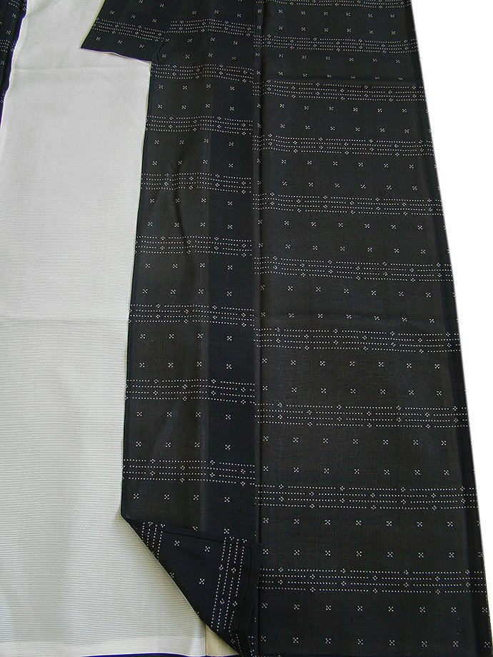商品説明 | こちらのお品は夏物でございますので、7月~8月にお召頂ければと思います。 「紗」と言えば、絽と双璧を成す夏のお着物の生地で、 その最大の魅力は絶妙の透かし加減でございます。 清涼感溢れる地の風を通すしなやかさは、夏に着物を着るという贅沢を 快適に愉しませてくれる事でしょう。 着物には、大きく分けて「袷(あわせ)の着物」と「単衣(ひとえ)の着物」と「夏着物」があります。 反物(表地)を着物に仕立てるときに、裏地類をつけるものを袷の着物、 つけないものを単衣の着物と呼び、胴裏や八掛といった裏地がつかない一枚ものの着物です。 また裏地がないため、座る時などにヒップのラインが目立たないよう、 居敷当て(いしきあて)の生地をつけることもあります。 居敷当ては付いておりません。 とてもしなやかなさらっとした肌触りが極上の着心地を誘う滑らかな「紗」の生地、 黒色地に白色の絣柄、裄が少し長めです、 女性の美しい表情と凛とした麗しさを醸す洒落感高い印象を身に着ける逸品です。 |