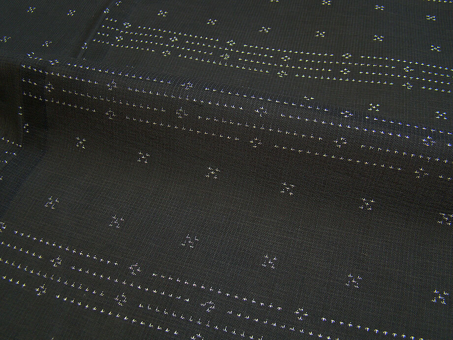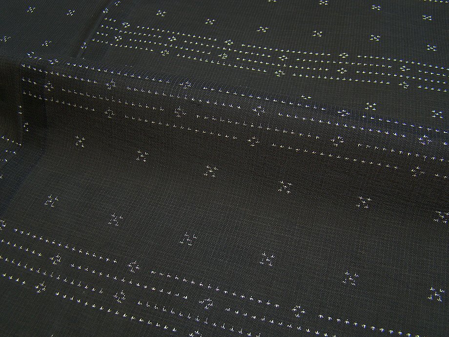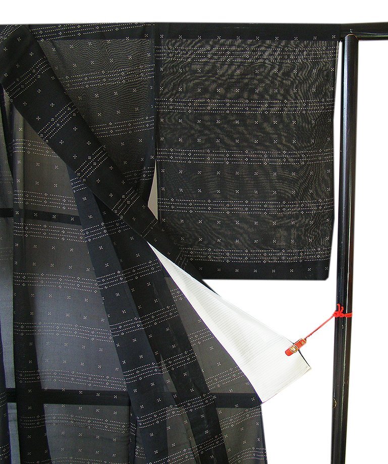 ちょっと一言 | 「紗」の最大の魅力はやはり涼感たっぷりとした演出に絶妙の透かし加減です。 とても涼やかで、さらっと着心地良く大変に滑らかな風合を醸し、シンプルな色彩の世界に 帯や小物等の組み合わせにより無数のコーディネートをご堪能頂けお愉しみ頂けます。 洒落味に満ちた存在感を身に付けて頂け、粋な装いに大人のお洒落に出会える事と思います。 |