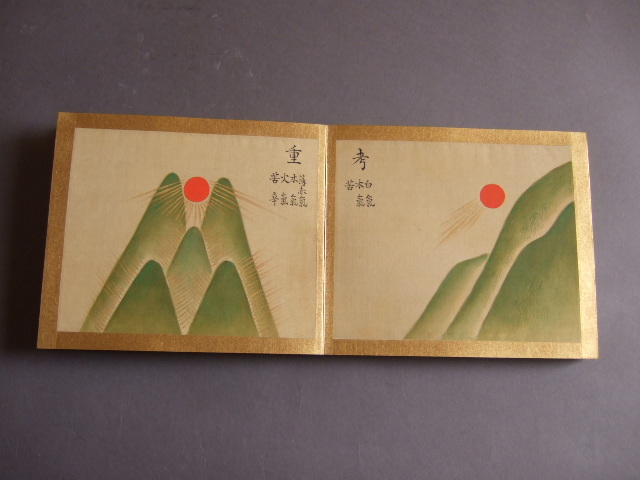 183x155mm。全15図。「心図」と題された肉筆画帖です。全15図。風水気功図の一種と思いますが、日輪と自然の風景を題材とした壮大な世界・宇宙論が展開されているようです。戦後の神道系新興宗教の世界観を表したものでしょうか?空海三輪の文字もあり、図像的にも大変興味深い逸品です。