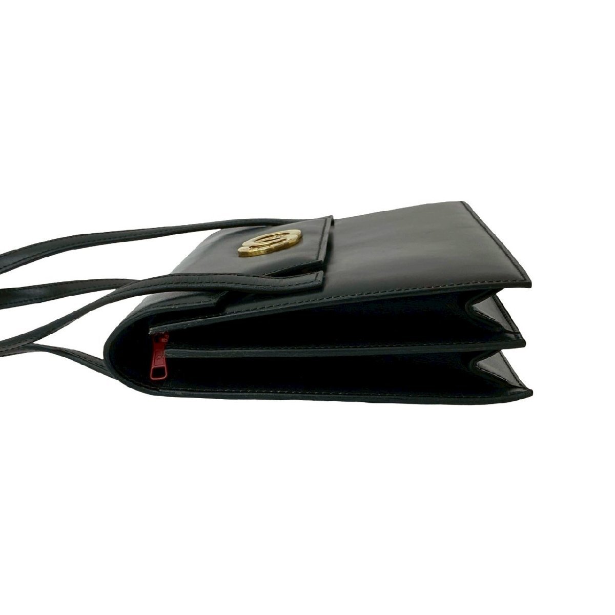 極 美品 CELINE セリーヌ ヴィンテージ サークル ロゴ 金具 カーフ レザー 本革 ハンドバッグ ミニ トートバッグ ブラック 黒 40769