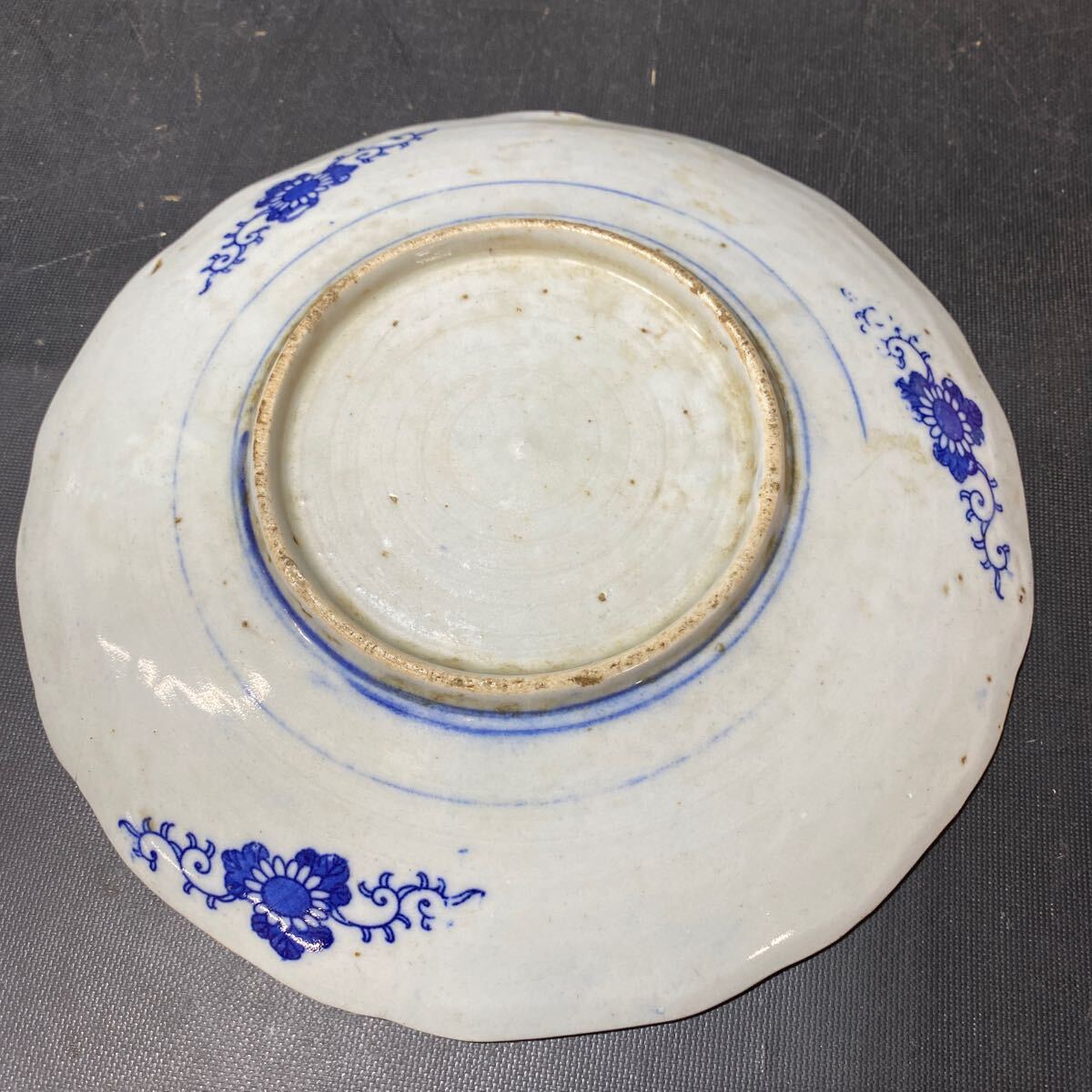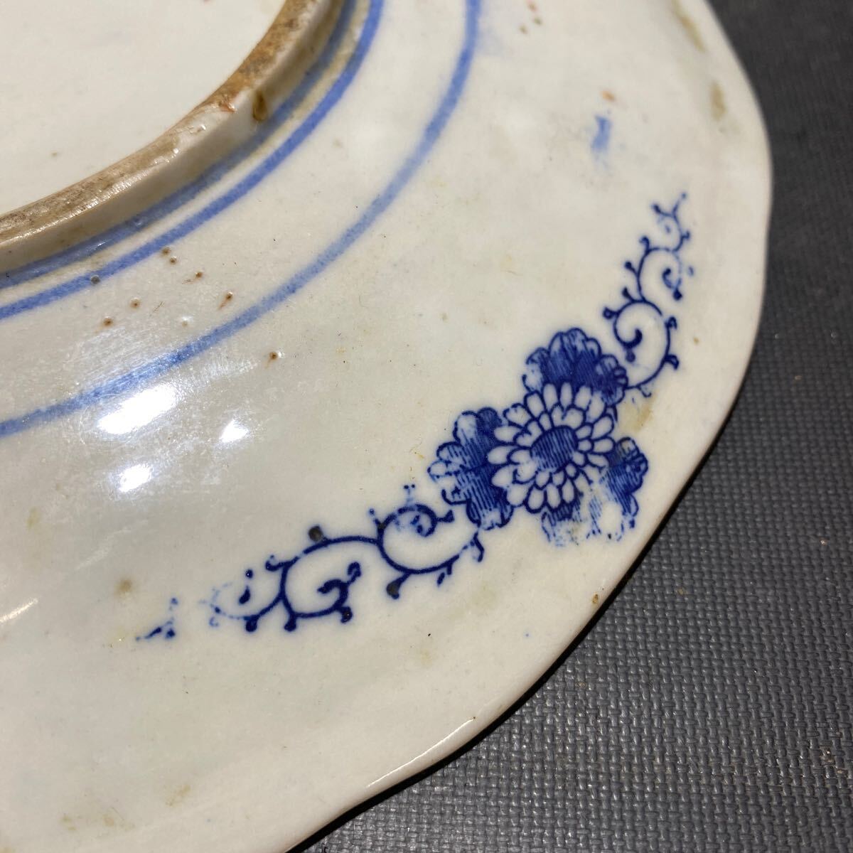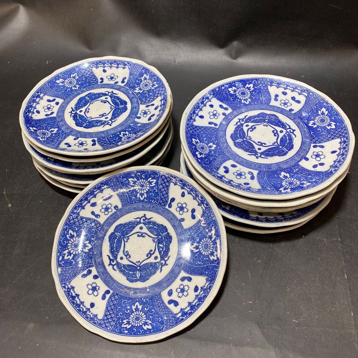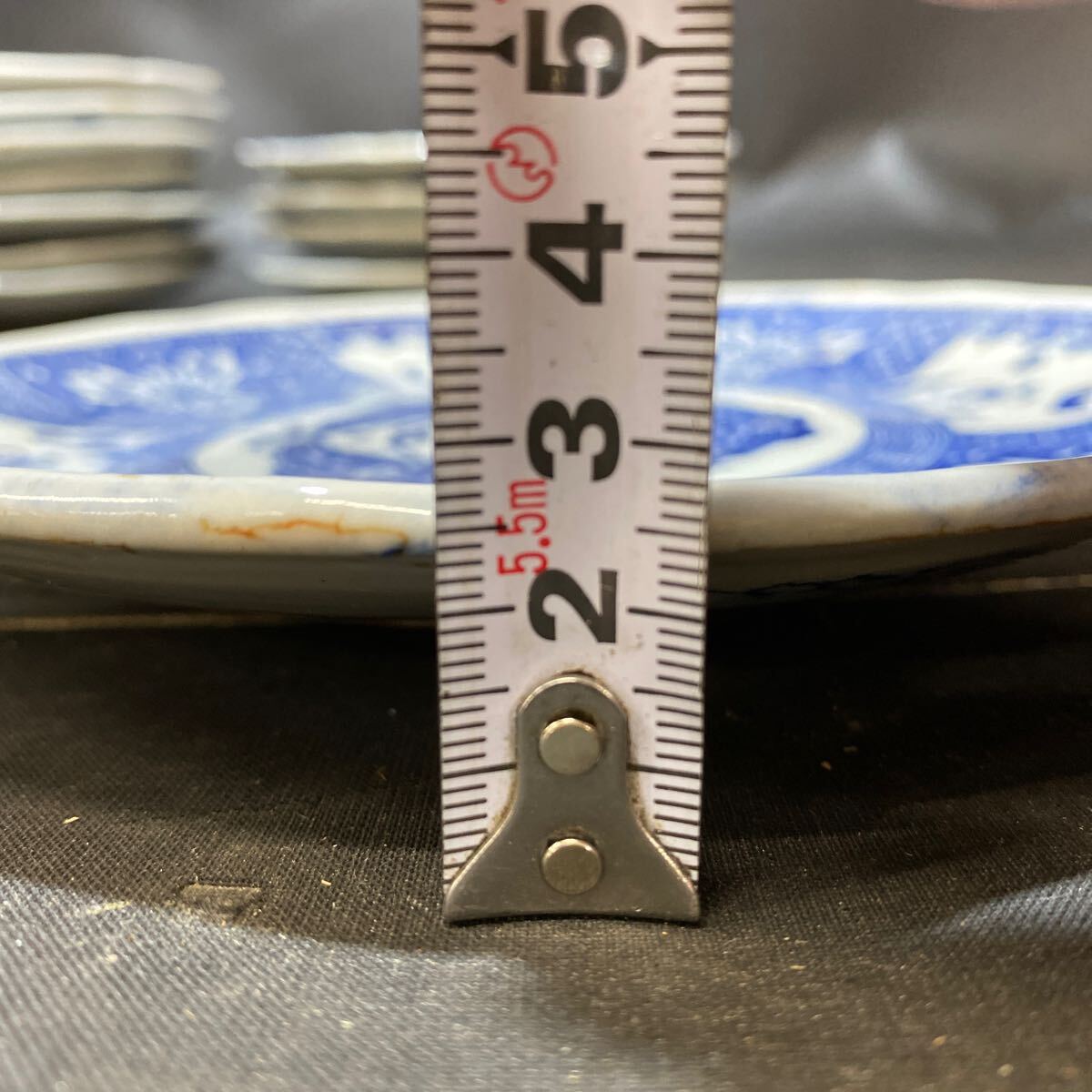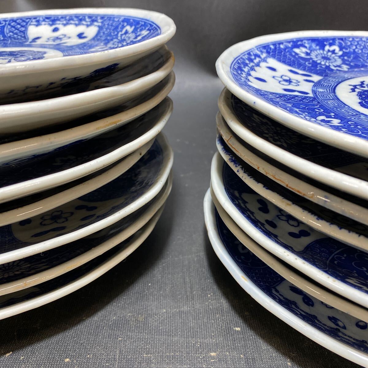N 6034 蔵出し!![ 古食器 染付 15枚まとめて!] 直径21㎝ 古伊万里 平皿 時代物 骨董 アンティーク 当時物 器 現状品