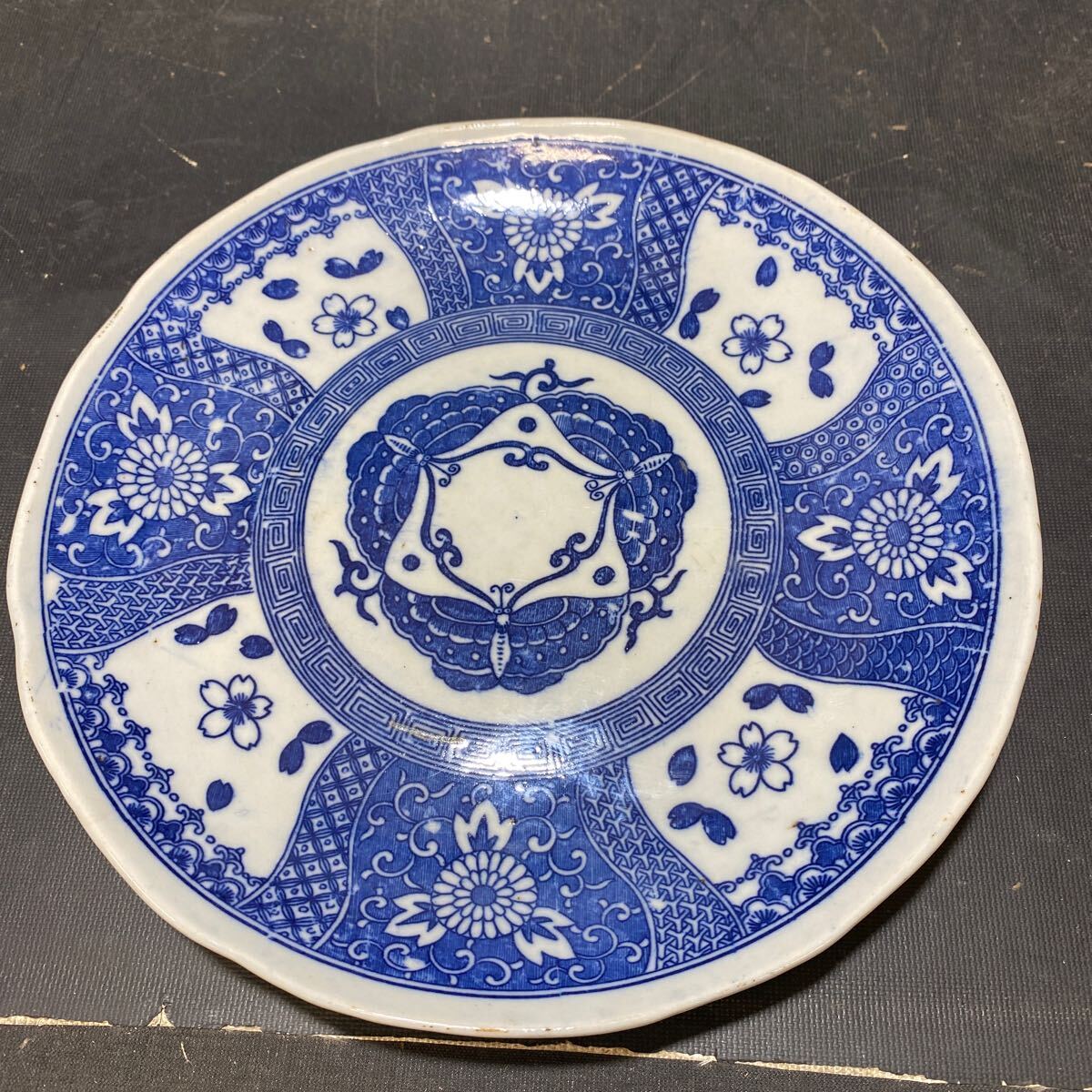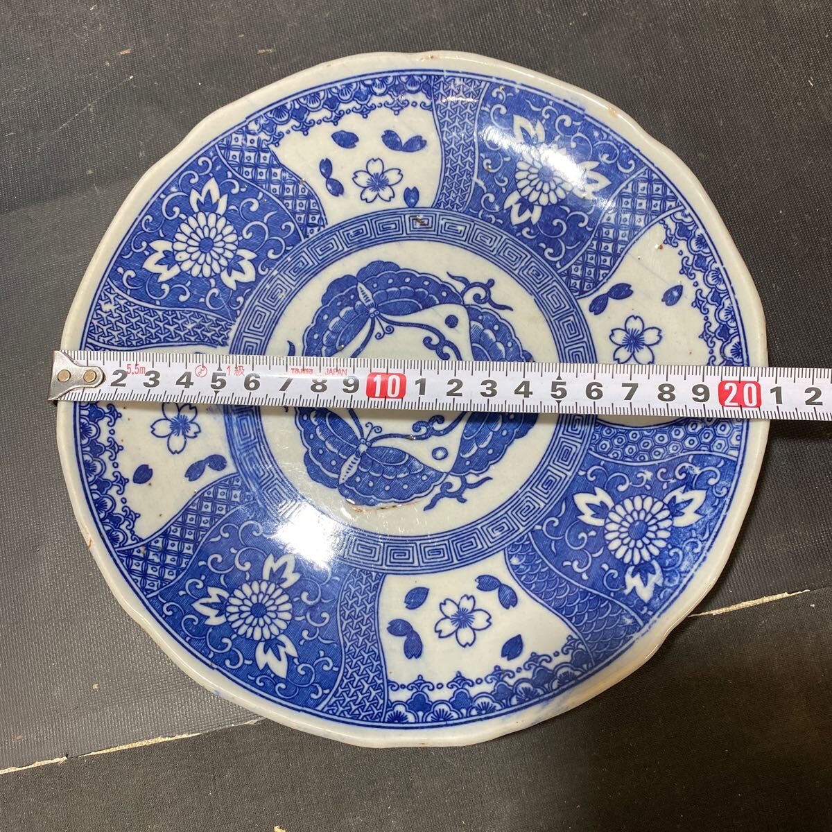 N 6034 蔵出し!![ 古食器 染付 15枚まとめて!] 直径21㎝ 古伊万里 平皿 時代物 骨董 アンティーク 当時物 器 現状品