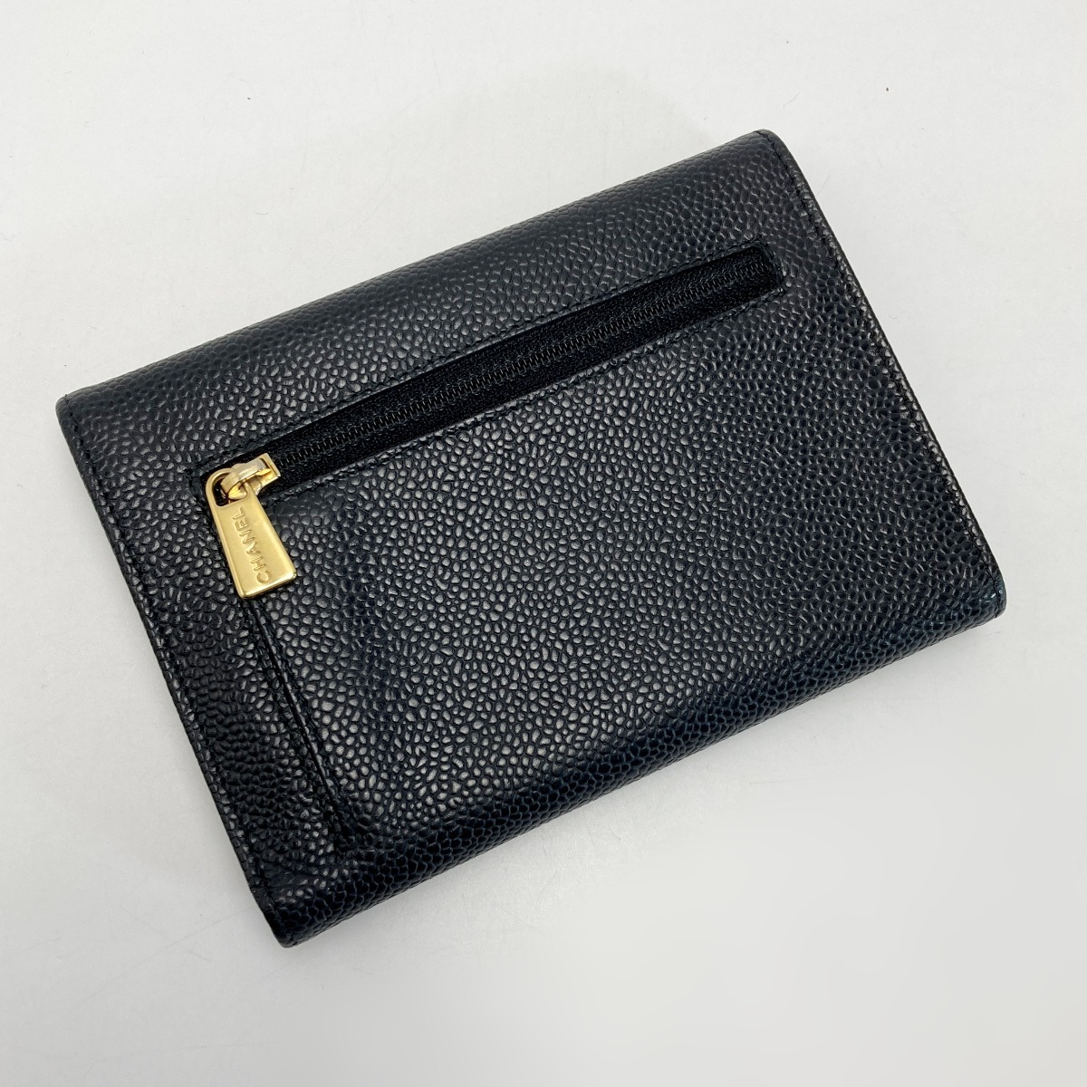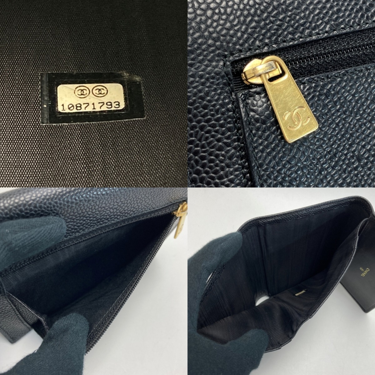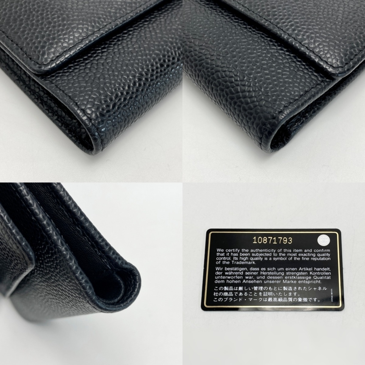 ☆☆ CHANEL シャネル ココマーク 3つ折り財布 A13225 ブラック キャビアスキン ギャランティカード有 やや傷や汚れあり