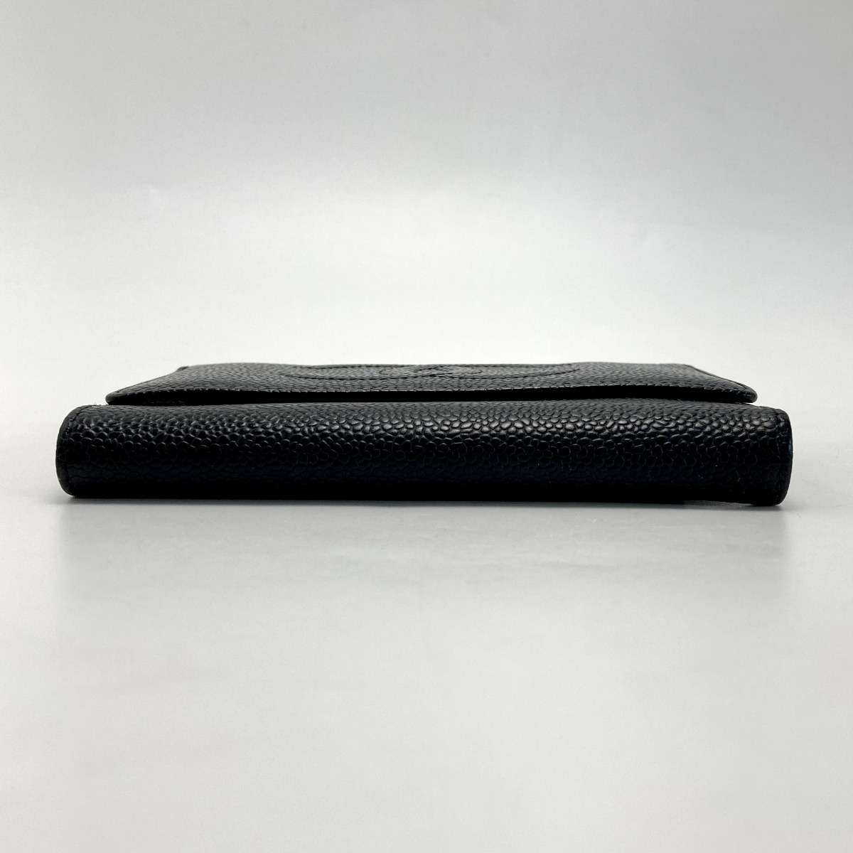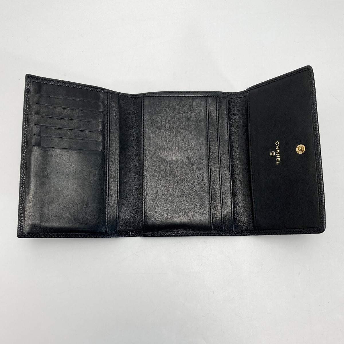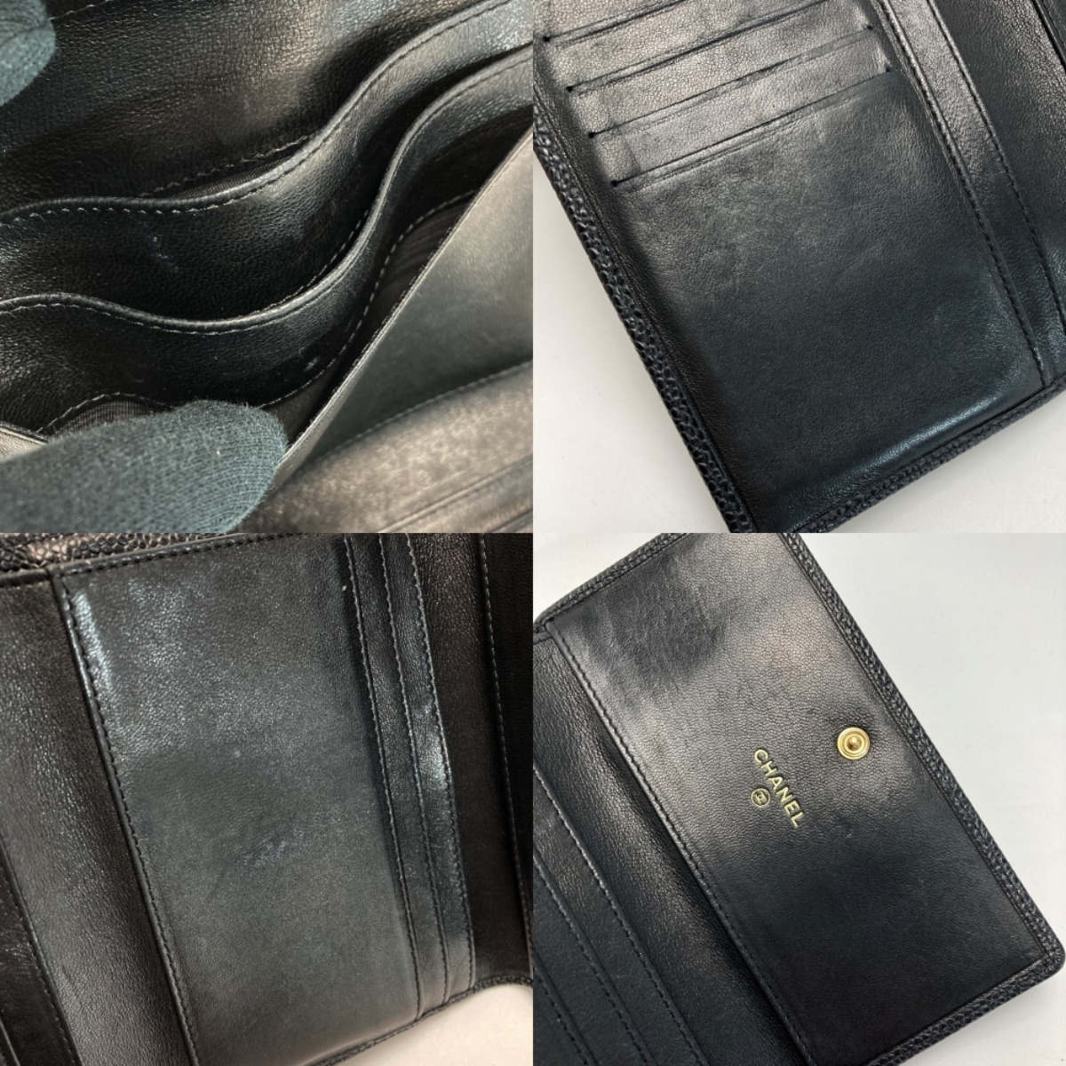【商品名】中古 CHANEL シャネル ココマーク 3つ折り財布 A13225 ブラック キャビアスキン ギャランティカード有 やや傷や汚れあり