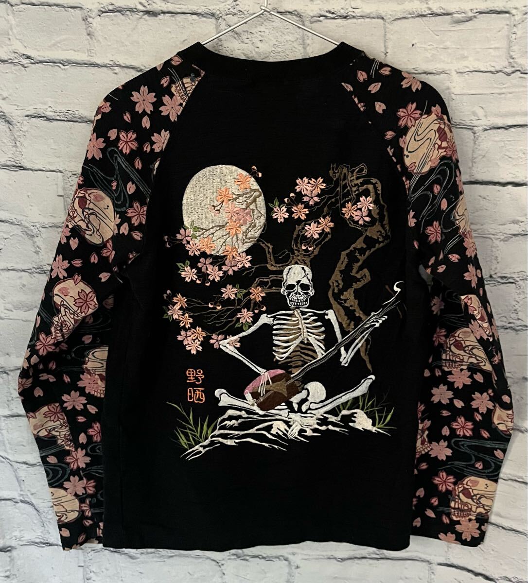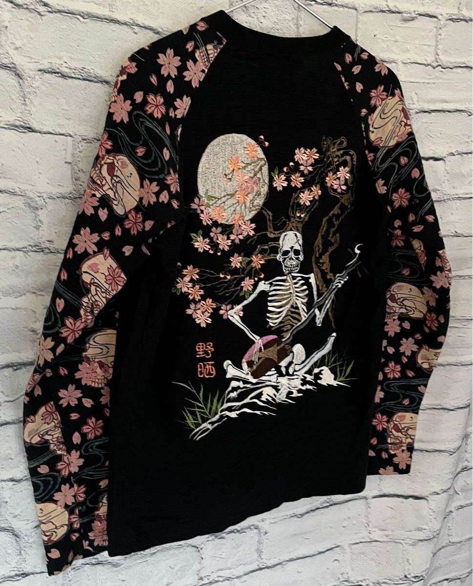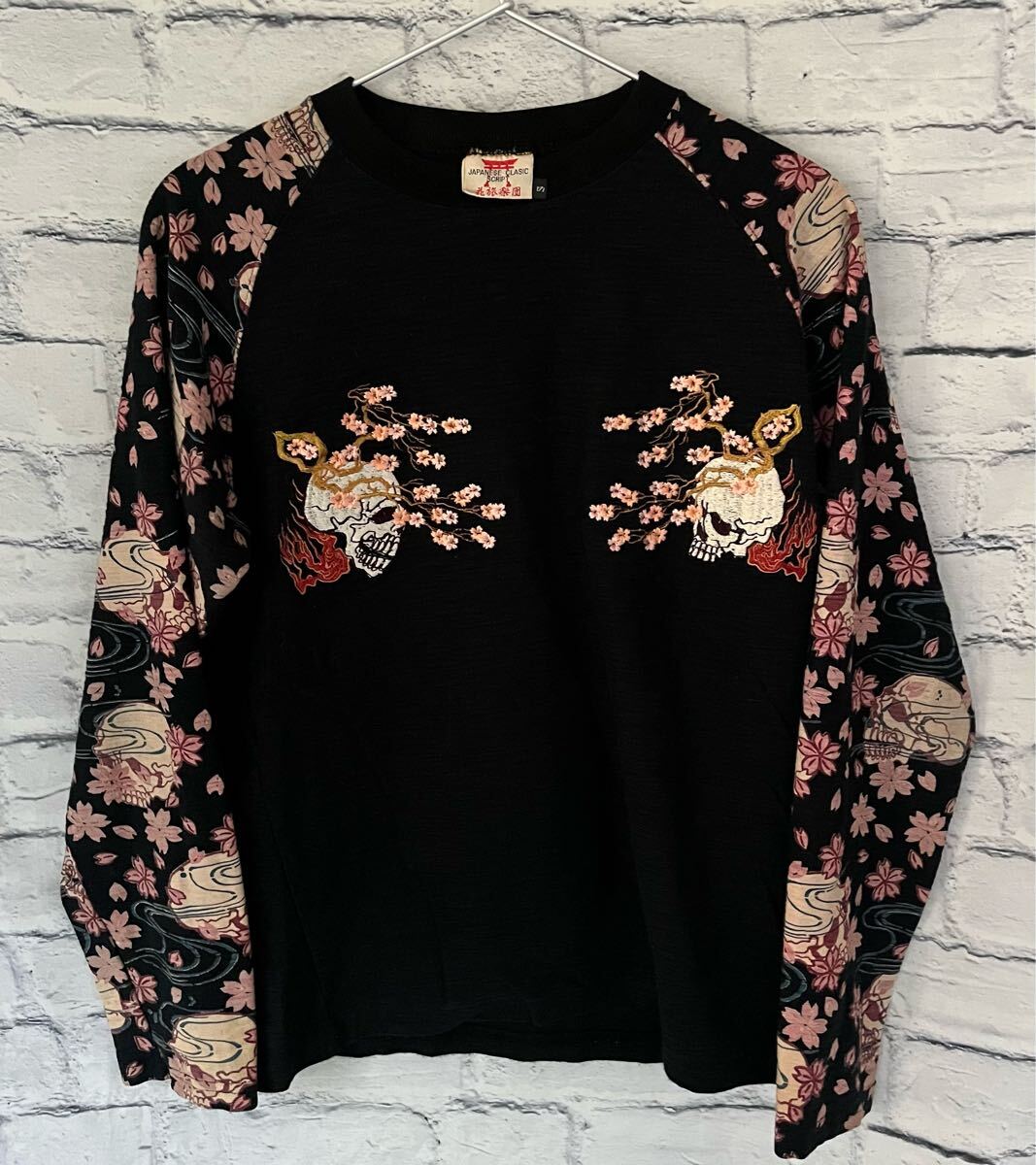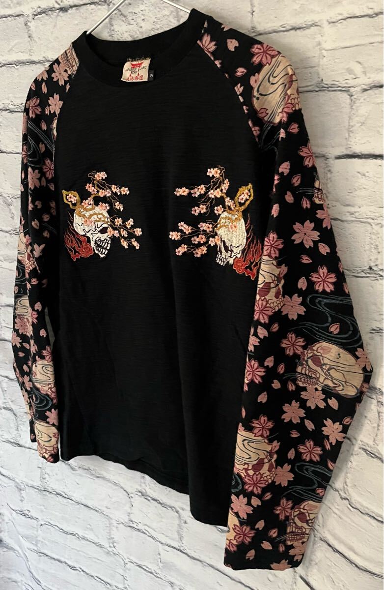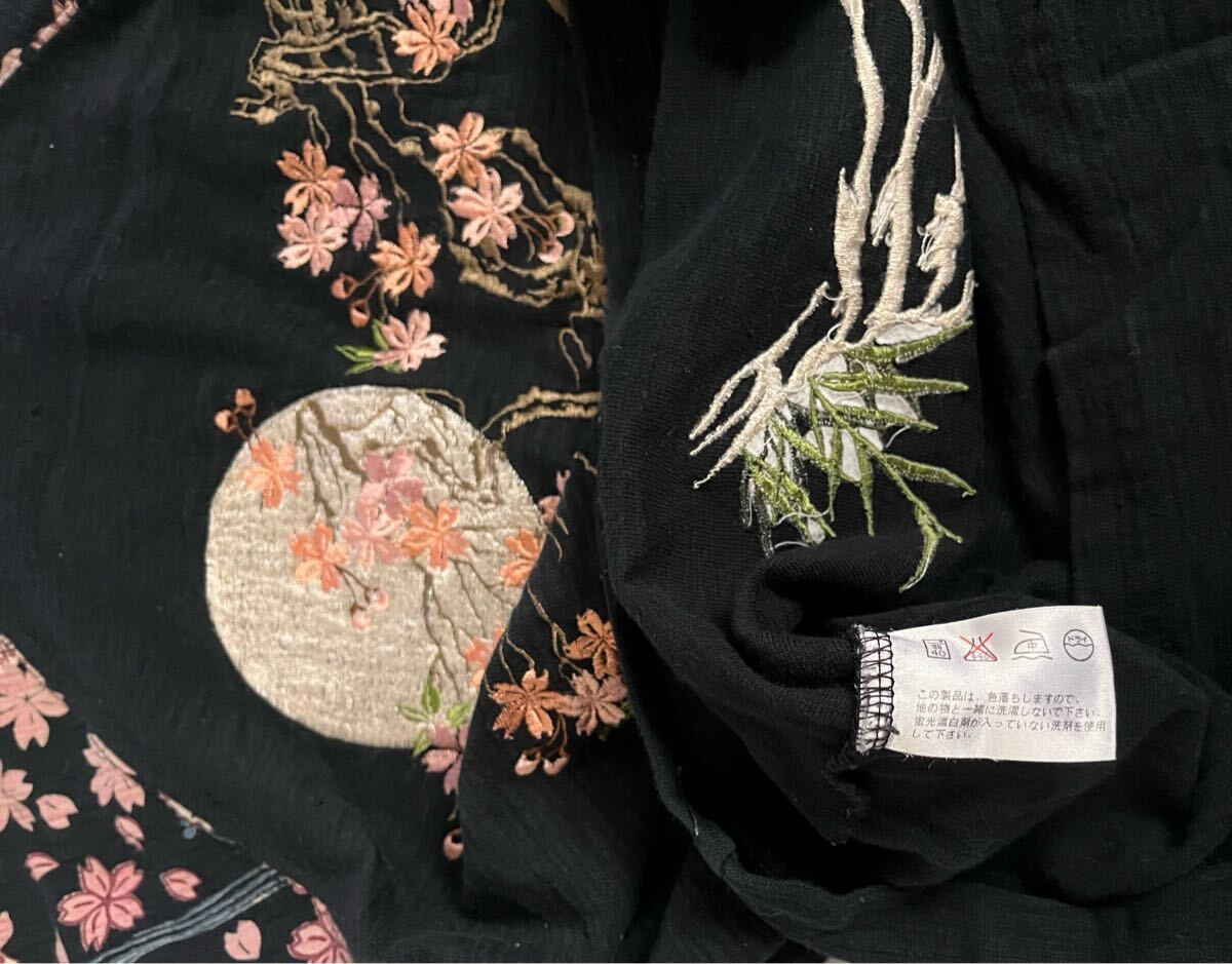 和柄 花旅楽団 刺デザイン長袖Tシャツ Sサイズ中古(管NO1223) | |||