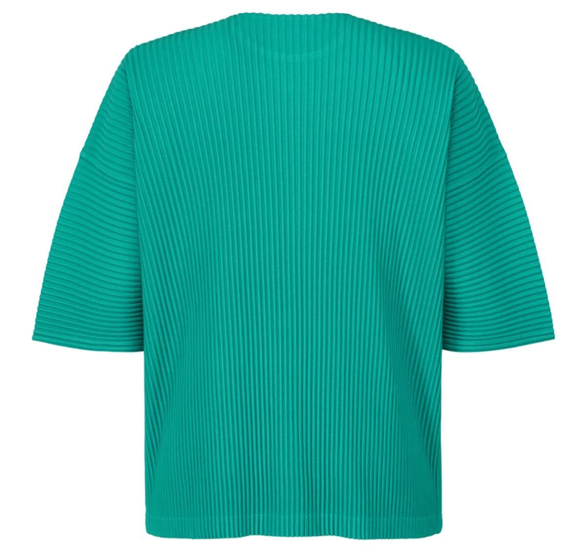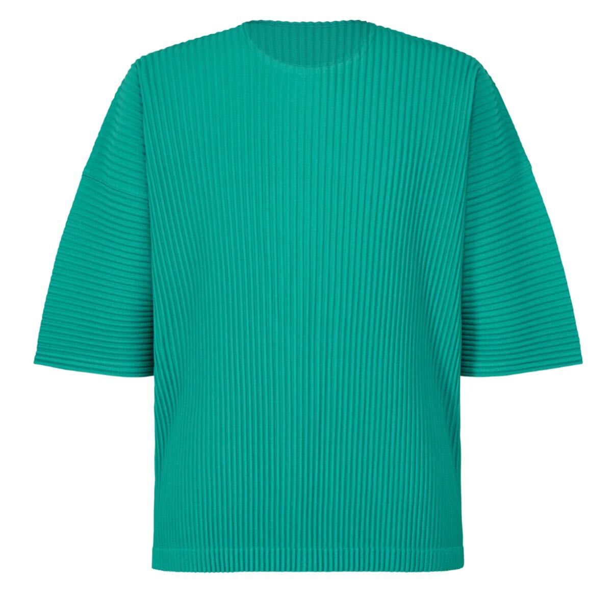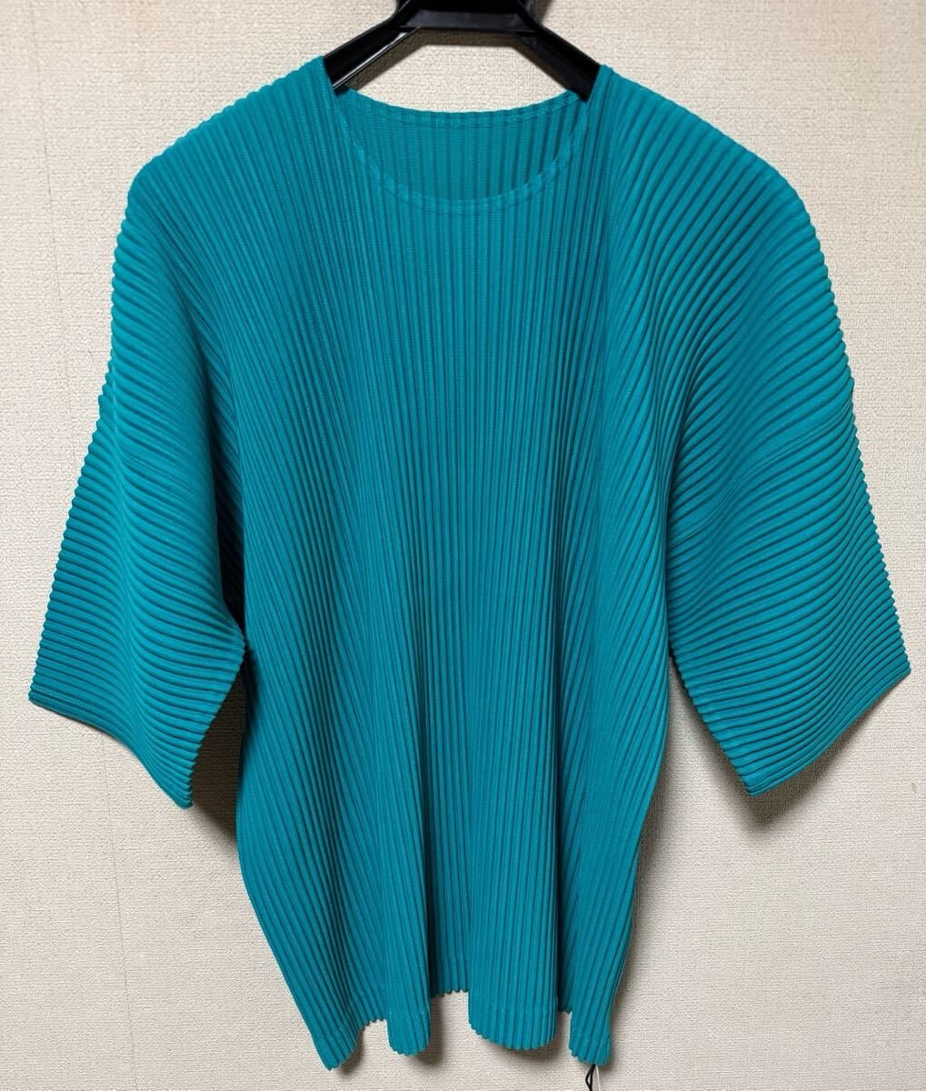 爽やかな色調の丸首半袖トップ。ポリエステル素材特有の乾きやすさを備え、携帯性や軽やかな着心地が特徴です。